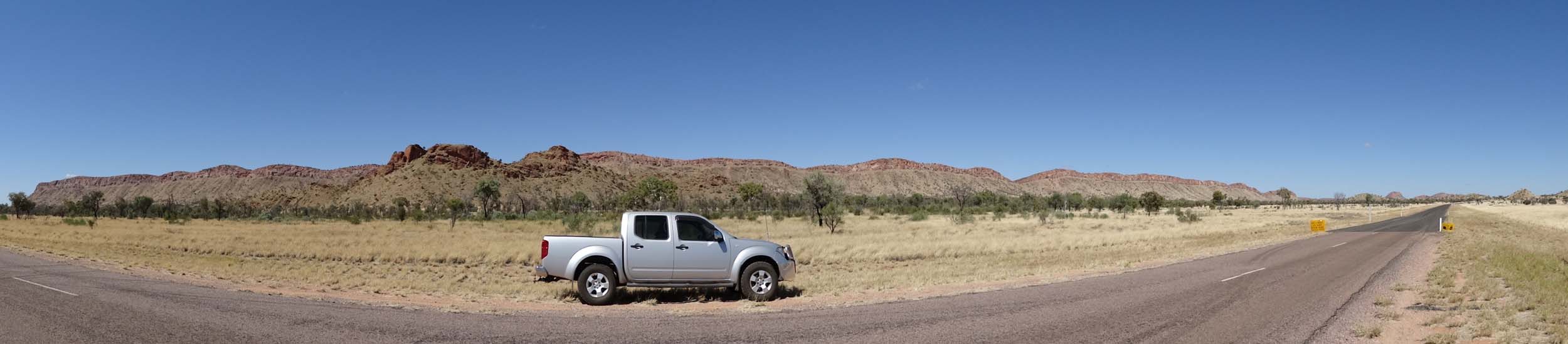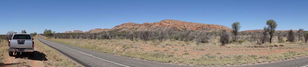 towards Alice and the turnoff to Simpsons Gap, arriving at 1:58pm after stopping along the way to take scenery shots of the West MacDonnell ranges.