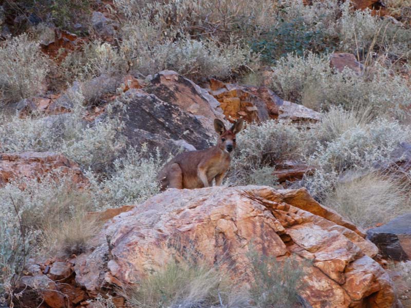 kangaroo about 10 meters away, 3 dingoes just lazing about on the dry riverbed and a 'rock wallaby' watching me ride by, except that I stopped and