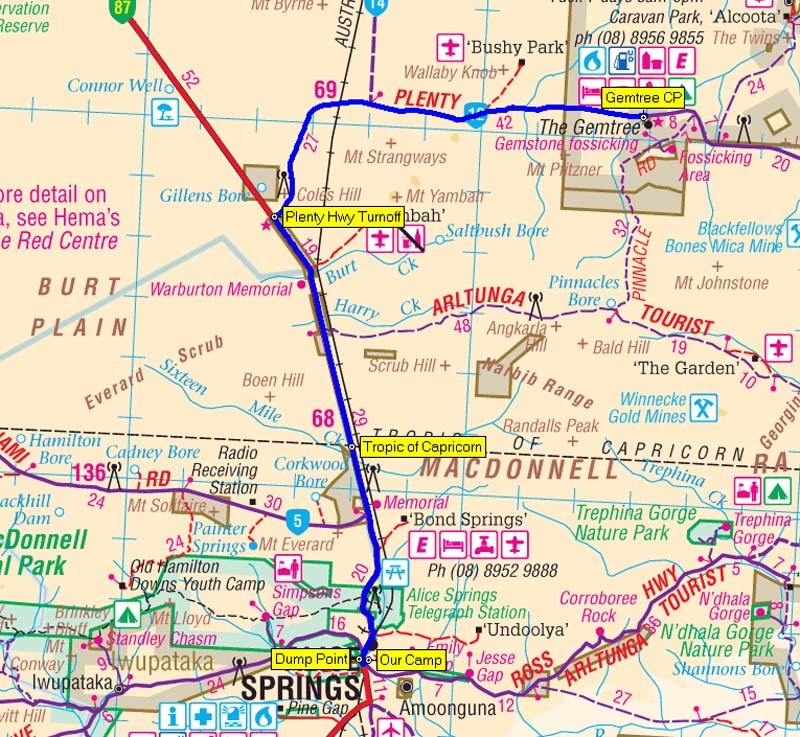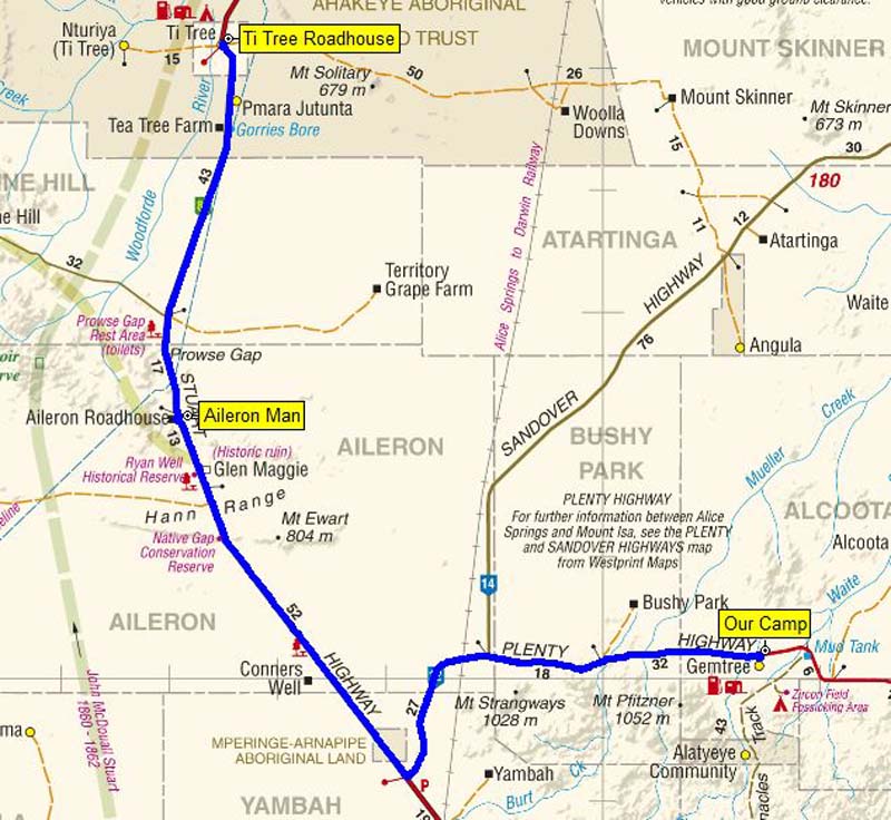 Our route from Gemtree to Ti Tree - 196kms.