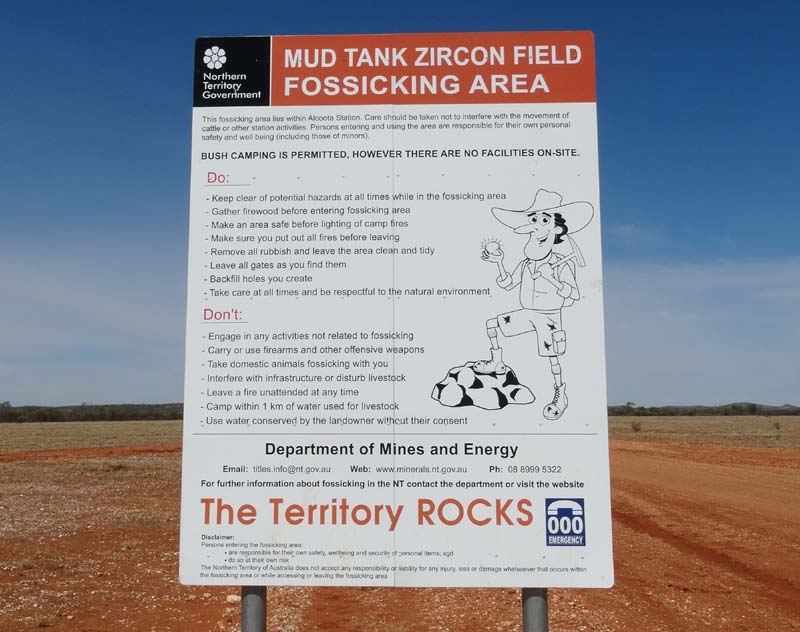 Mud Tank Zircon field fossicking area sign.