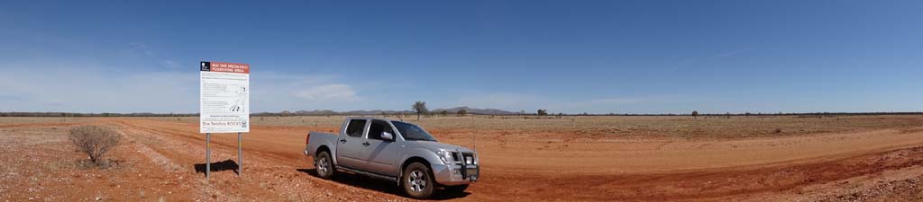 stopped opposite the monument and took some photos. Continued on for a further 37kms, where we turned right onto the Plenty Hwy (10:22am) and stopped for some