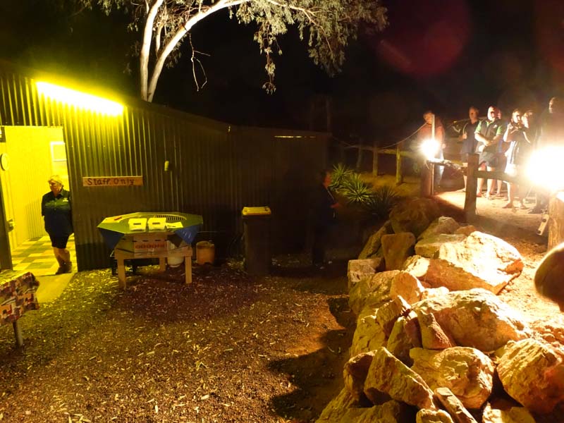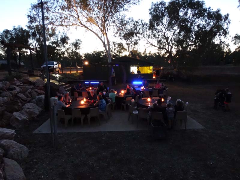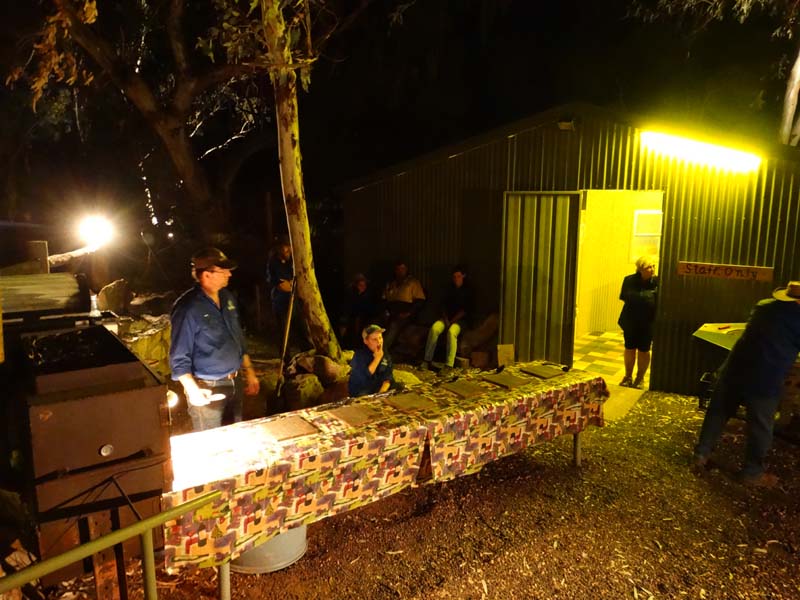 Just on 6pm, we walked up to the Camp Kitchen area for the "Chalmers Family Camp oven dinner" held each Wednesday and Sunday, with the Chalmers Family who own the Gemtree CP, it costs $20 per head and Crownies cost $6 each, I had a few, they went down well. We sat with Mick and Ann who were on both our fossicking tours.
