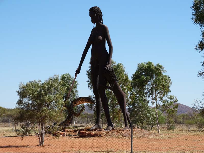 Stuart and Plenty hwy(9:43am). Turned right and headed 66km to Aileron(10:38am) to photo the "Aileron Man". Then continued non stop the final 60kms to Ti Tree.