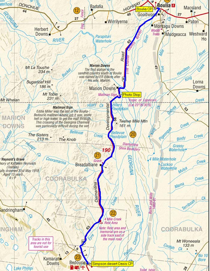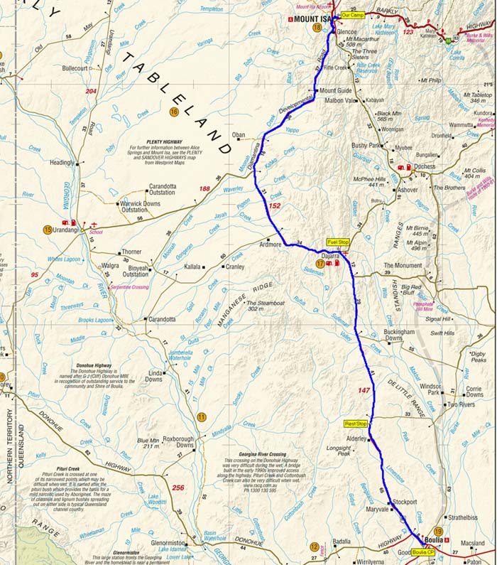 - Fri 13th May - Boulia - 2 nights, do sightseeing etc.