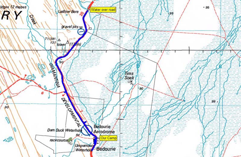we are going sightseeing and will drive towards Birdsville until we come across the flooded section, take photos, turn around and head back to camp. As we were