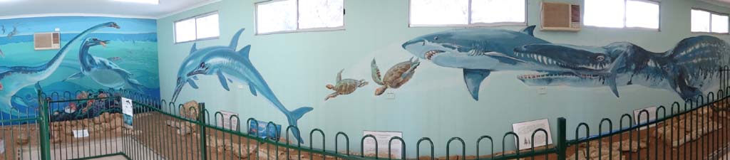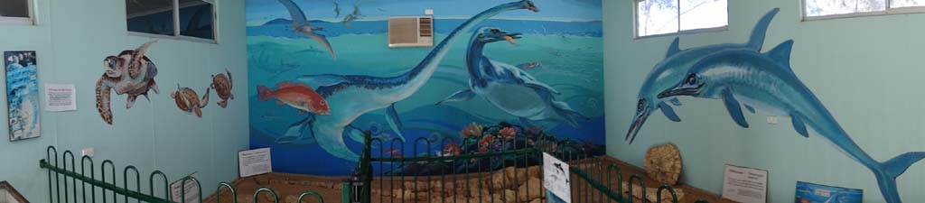 The Stonehouse Cottage was built between 1885 to 1888 for James Jones and his wife Marg. The Marine Reptile Fossil display was created and built by local resident "Dinosaur" Dick Suter. The murals were done by Dick's sister Rona. The rest of the museum had a Hospital display, Indigenous and Historical room, a Telecommunications Room (similar to what we have in our fiver). We spent about 2 hours checking it out, it was quite good.