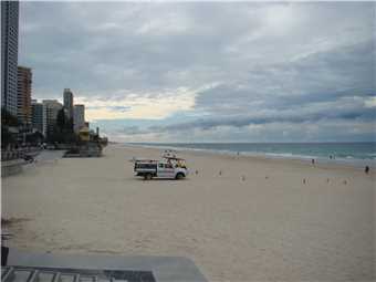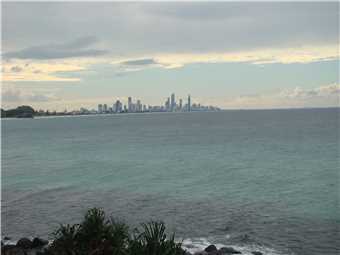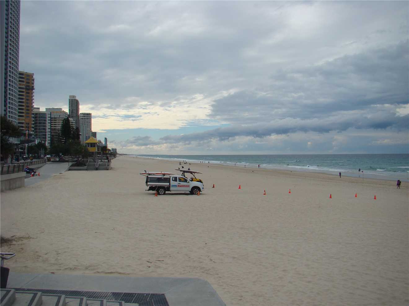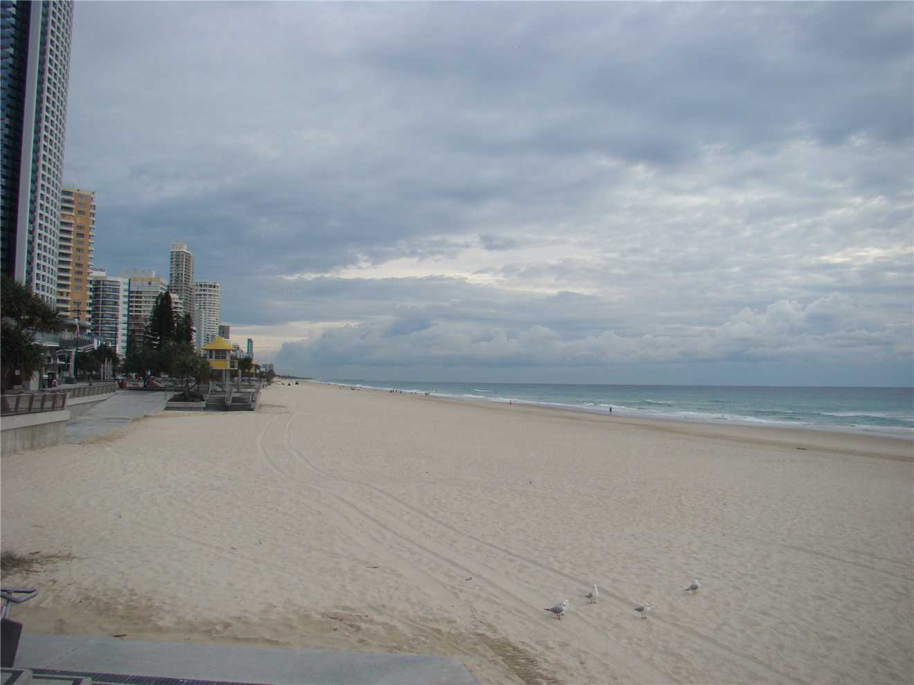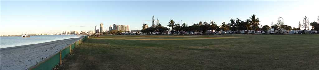 I slept well, even if I heard 2 separate periods of rain on the roof. I woke at 5:30am BUT managed to go back to sleep, finally getting up just after 7am. I had weet bix for brekky. Marg was 'dead to the world', SO I changed into 'cycleman' and left at 7:46am. As I walked out the door, there was a beautiful 'rainbow' and a few drops of misty rains. I decided as it was not a pleasant day, that I will ride the 'short' route today, which consisted of turning around at Laycock Ave in Surfers and going out to the Spit and Labrador and then back to camp. Well, I realised that I stuffed up as I was riding through Broadbeach, so much for my 'short' ride. The only positive was that it was dry. SO I did my 'normal' ride down to Burleigh.