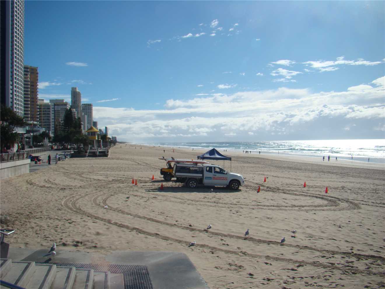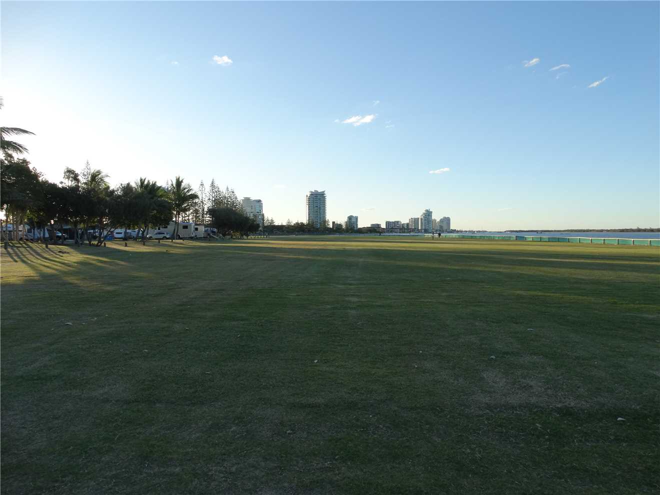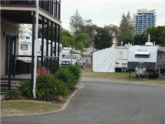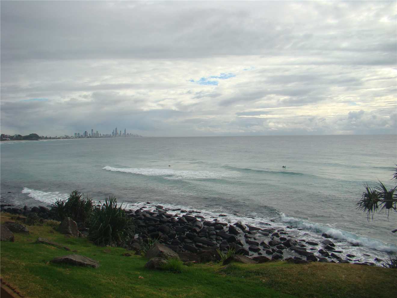 I slept well, even if I heard 2 separate periods of rain on the roof. I woke at 5:30am BUT managed to go back to sleep, finally getting up just after 7am. I had weet bix for brekky. Marg was 'dead to the world', SO I changed into 'cycleman' and left at 7:46am. As I walked out the door, there was a beautiful 'rainbow' and a few drops of misty rains. I decided as it was not a pleasant day, that I will ride the 'short' route today, which consisted of turning around at Laycock Ave in Surfers and going out to the Spit and Labrador and then back to camp. Well, I realised that I stuffed up as I was riding through Broadbeach, so much for my 'short' ride. The only positive was that it was dry. SO I did my 'normal' ride down to Burleigh.