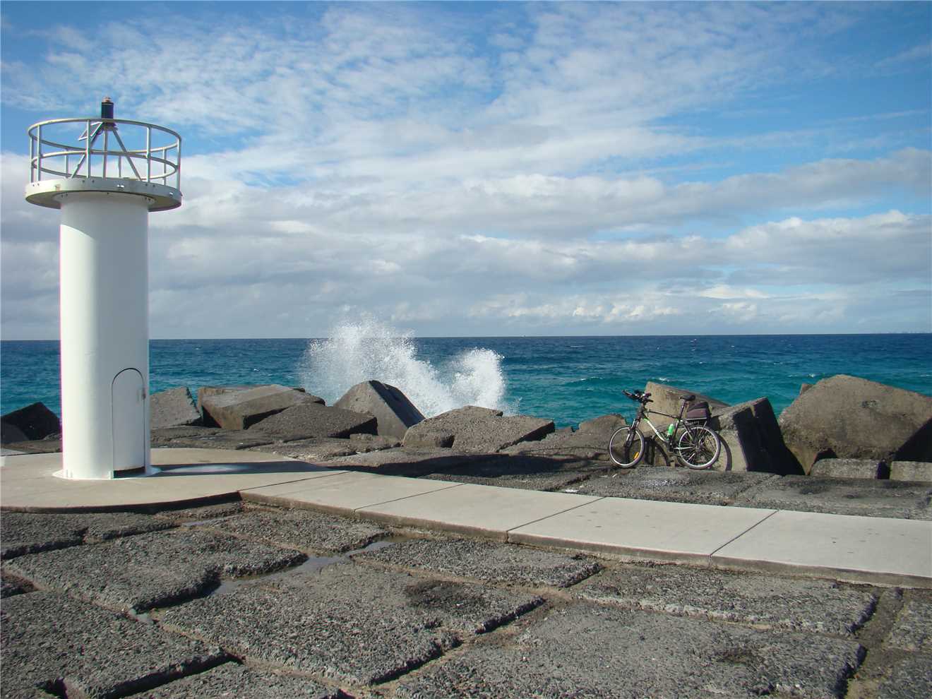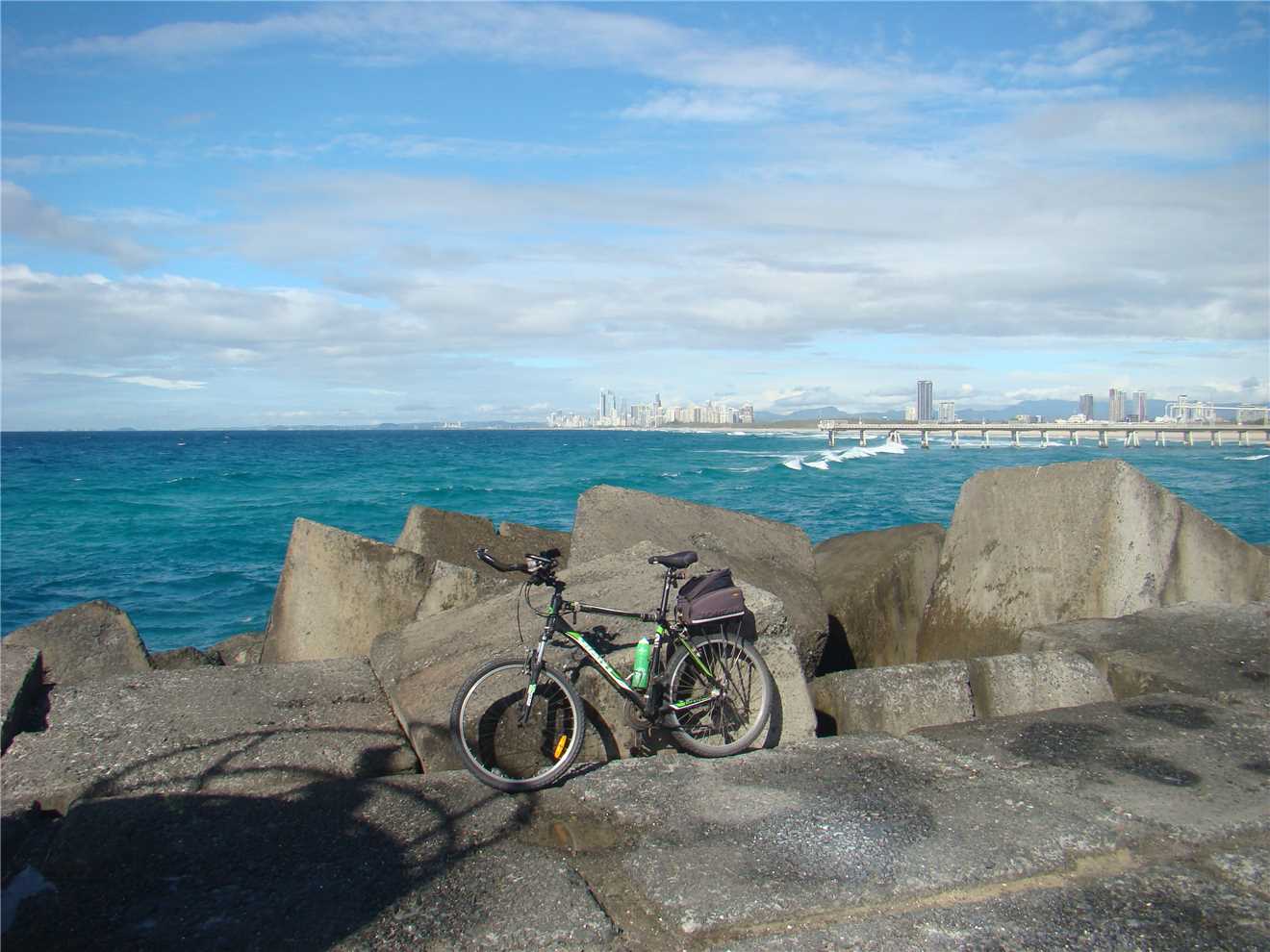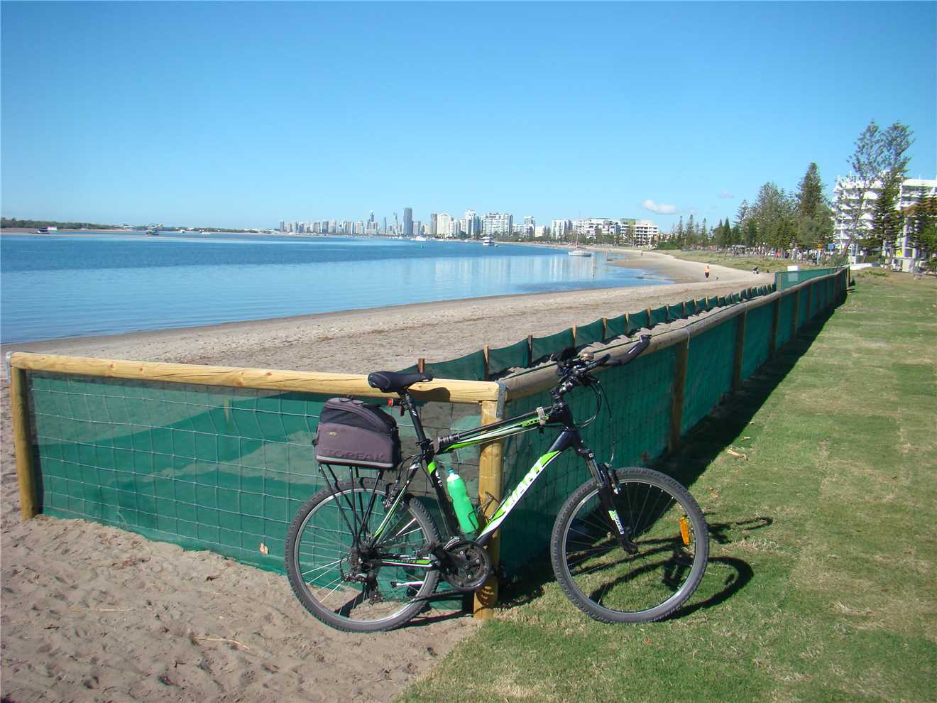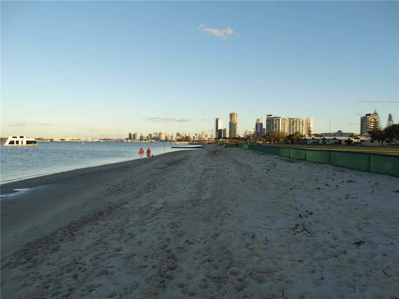 $1B Jewel Gold Coast, they were erecting a 4th monster crane, yesterday they were doing a BIG concrete pour. The joint is jumping. I continued to Burleigh Heads, then headed back to The Spit, stopping at Robbie McEwen's cafe at Miami Beach for a coffee, then along the shared paths, through Broadbeach and Surfers then along the Federation Walk starting at the Southport SLSC and ending at the Seaway. Out to the end of The Spit, I watched Meridan Passage 11 enter the seaway, ate my bananas AND watched a dolphin making its way out to sea. I missed the photo chance, sorry. Then along Seaworld Drive to Southport Yacht Club, then along the shared path, up through Labrador and Biggera Waters and then back to camp, about 57kms. This is my normal route.