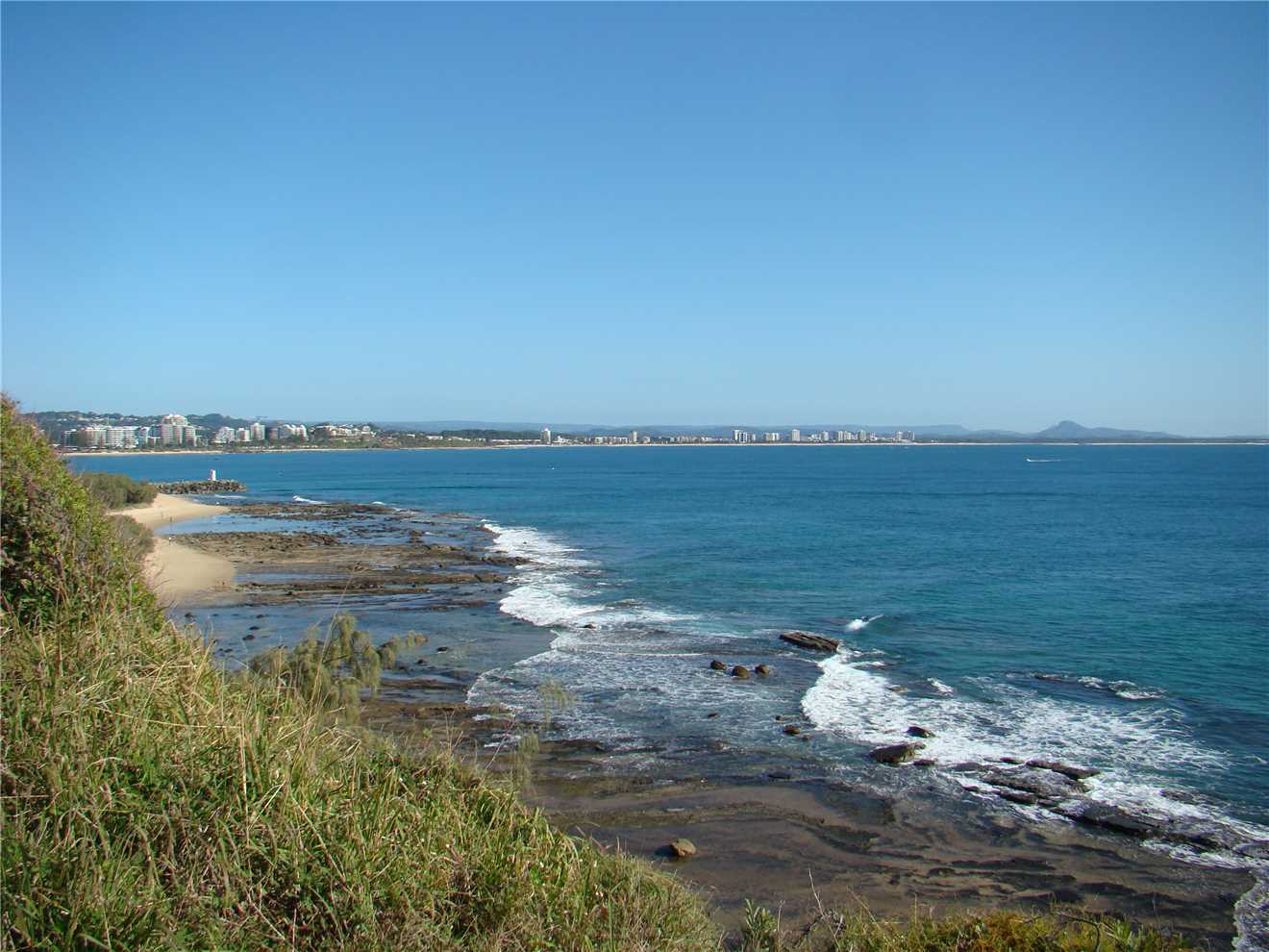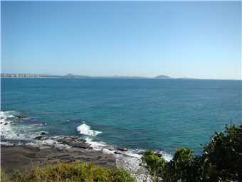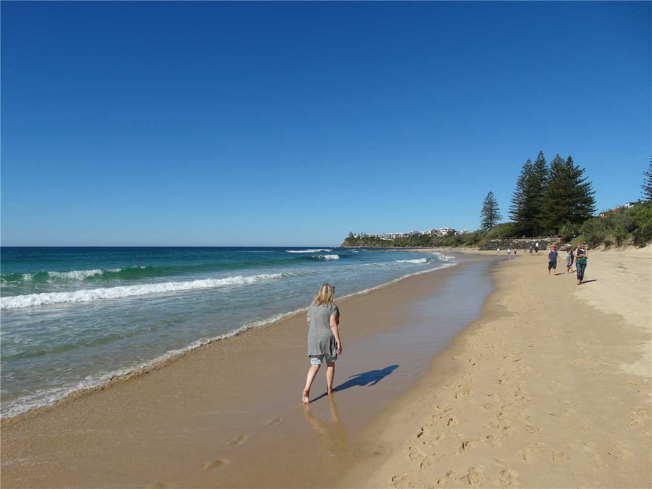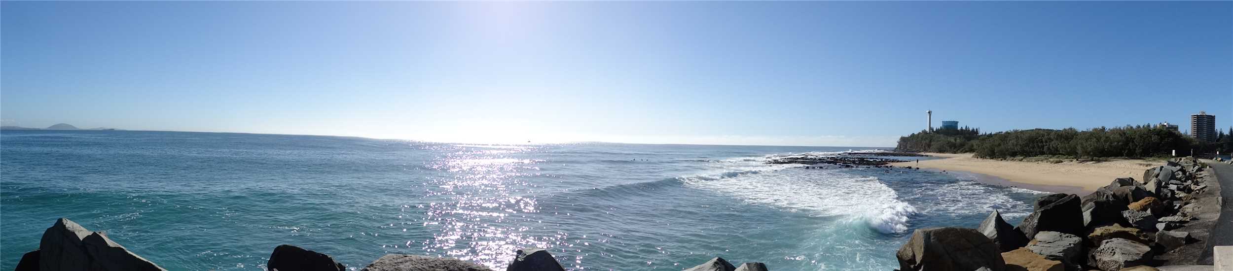 Today's walk along the beach upto the rocks. That is Caloundra across the water.