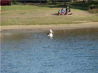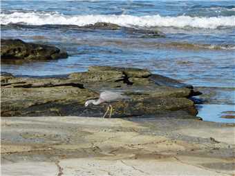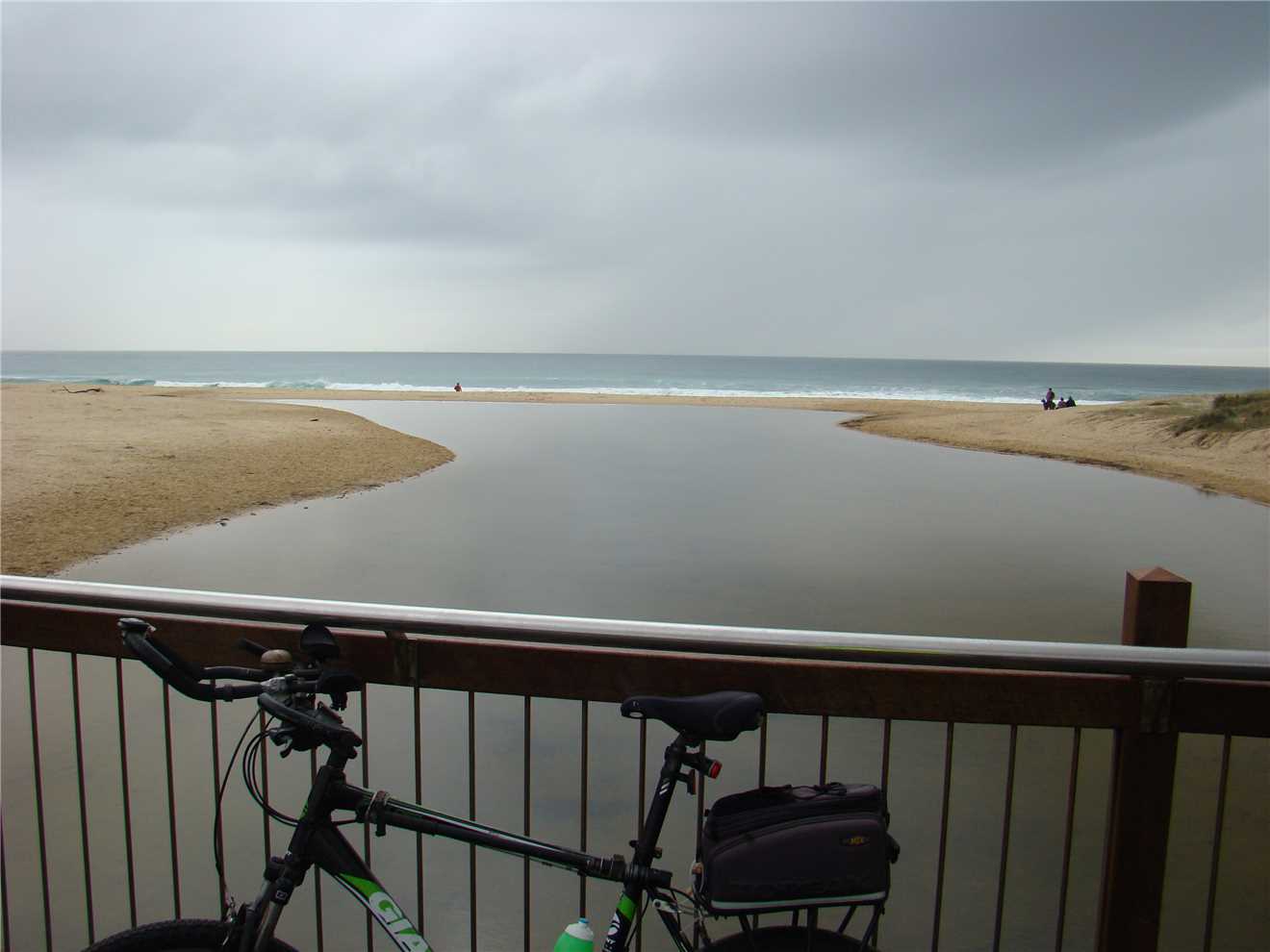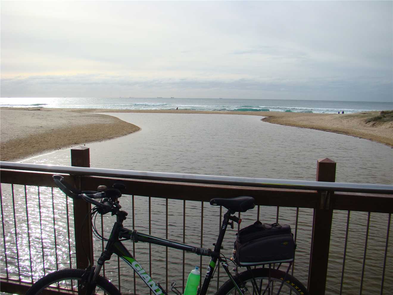 As we arrived back at camp, the clouds had parted and the sun came out, SO I decided to go for a ride. We had lunch first, then I changed into 'cycleman' and left camp at 1:06pm and headed North towards Mooloolaba. It was warm (around 22°), so I didn't wear my jacket, but put it in my pack rack. There was a beautiful tailwind pushing me to the Lighthouse. When I got there, I admired the scenery and took some photos, then rolled down the Hill to the 'Spit', where I took some photos of the surf and the surfers. I had 16kms of headwind back to camp, SO I rode along the shared paths wherever possible, because it is in amongst the trees and breaks the headwind. As I approached Currimundi Lake, George was there to welcome me. He has been there on the 1st and 5th rides but as I tried to photograph him, he flew away. As I was riding past Coco's Beach cafe at the beach end of Currimundi Lake, I stopped for a coffee, I was the only customer there, apart from Ian (the Ibis). I arrived back at camp at 3:23pm after 33.0kms.