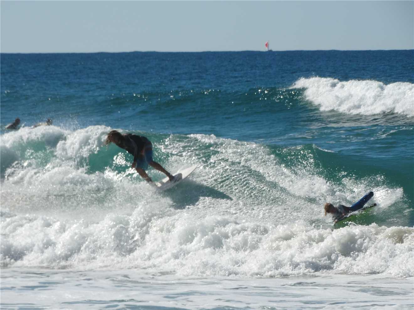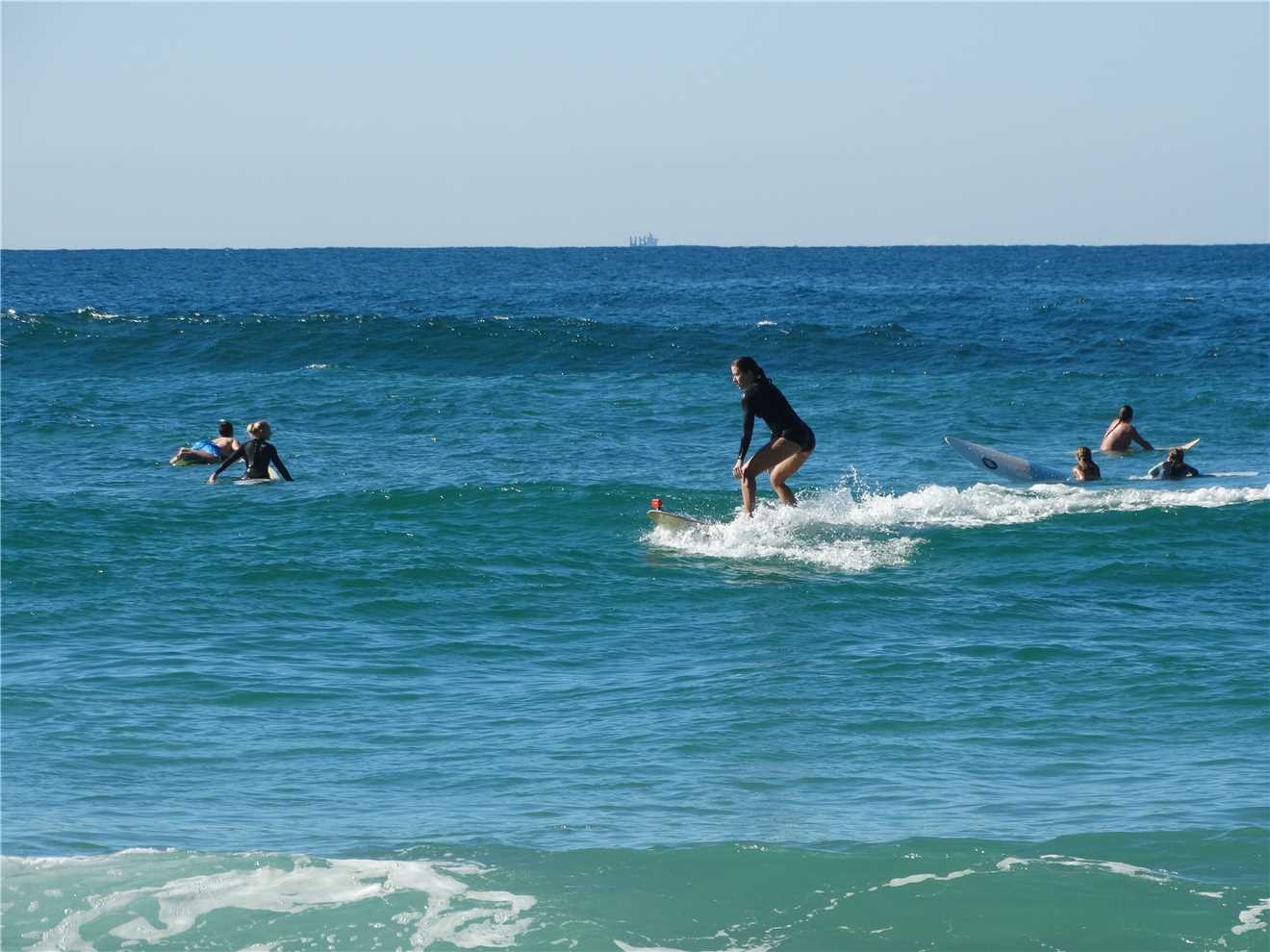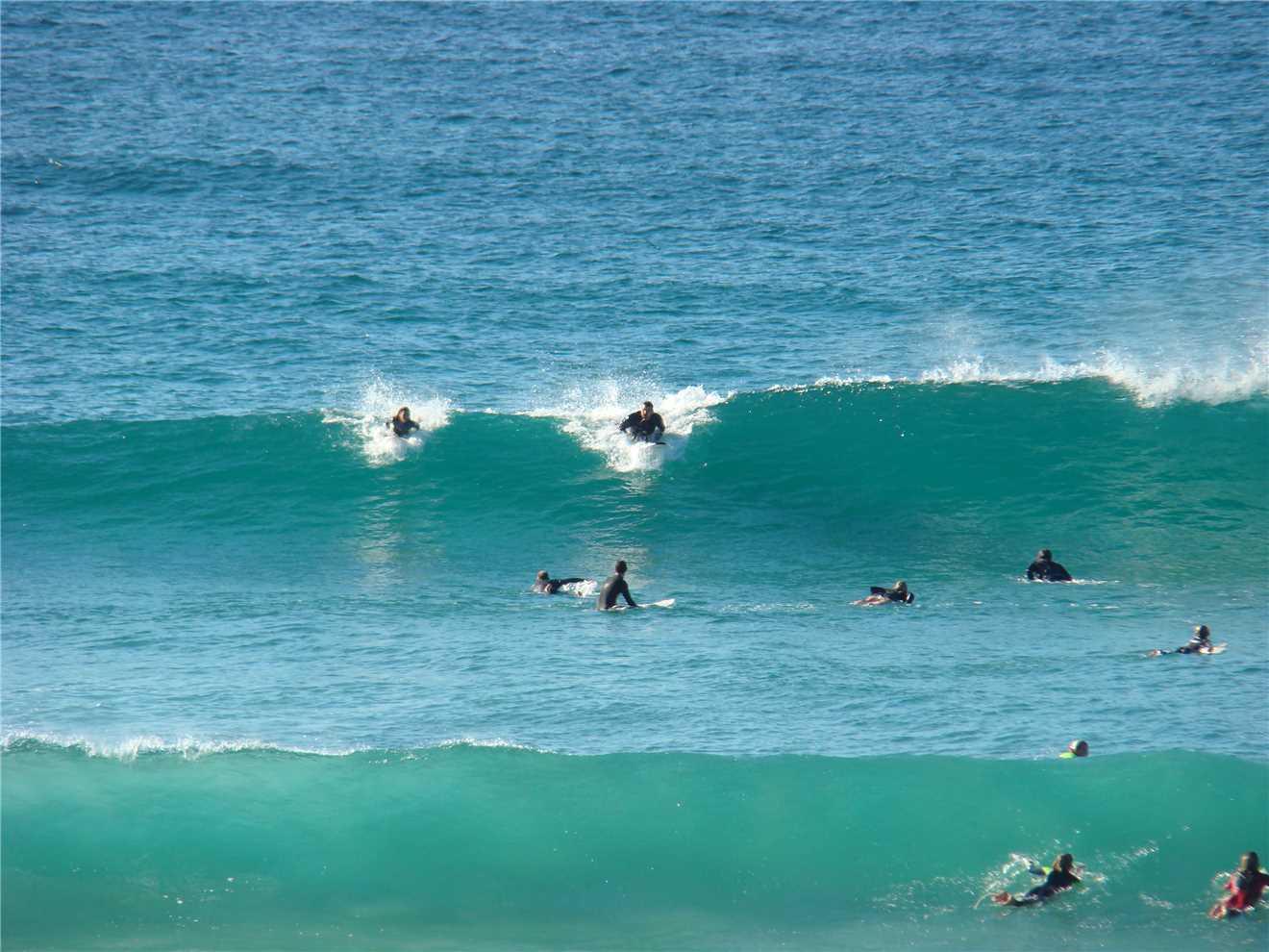 The surfers were out in force today, just off Dicky Beach.