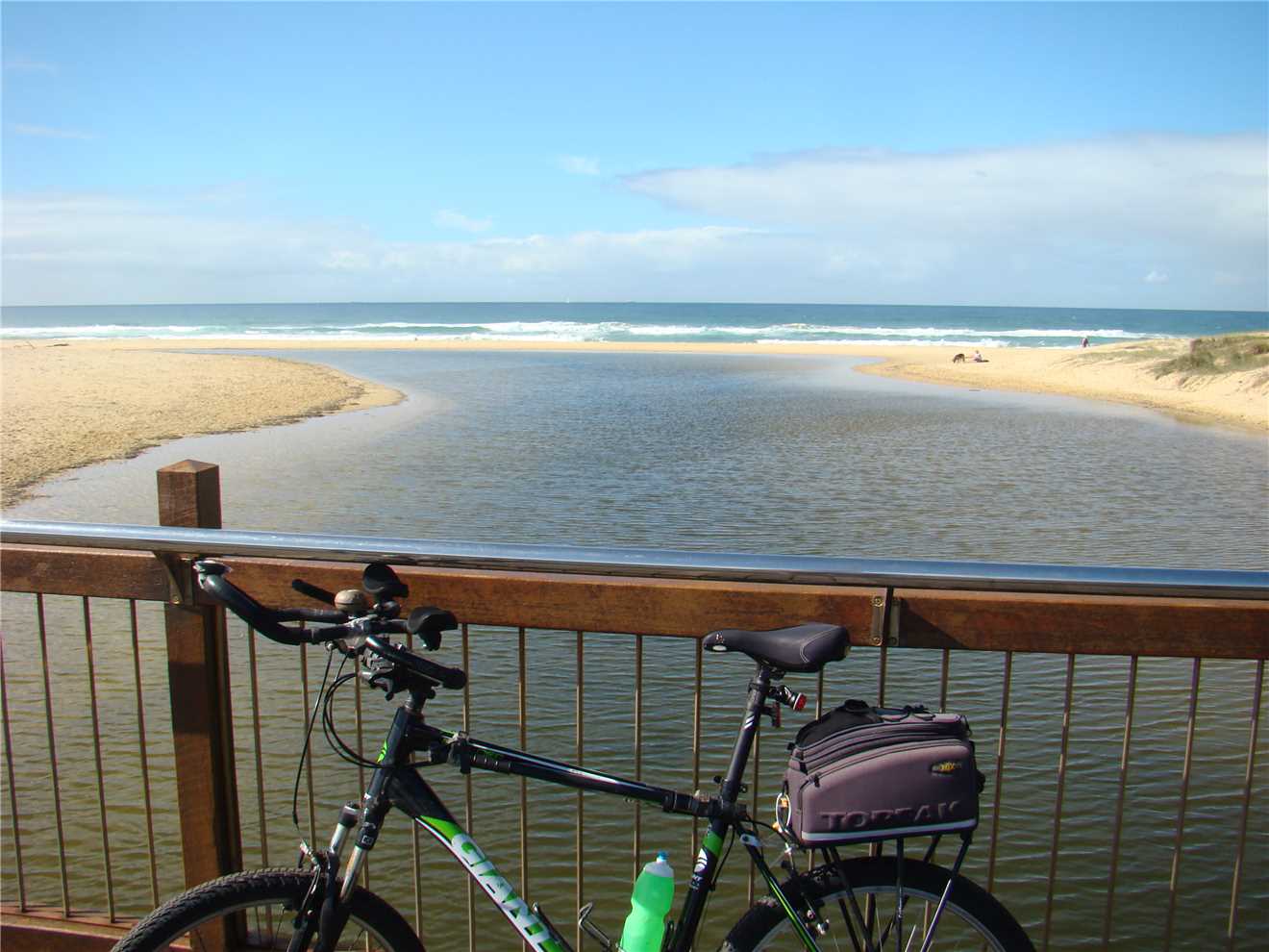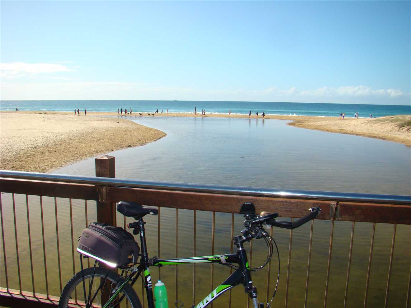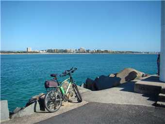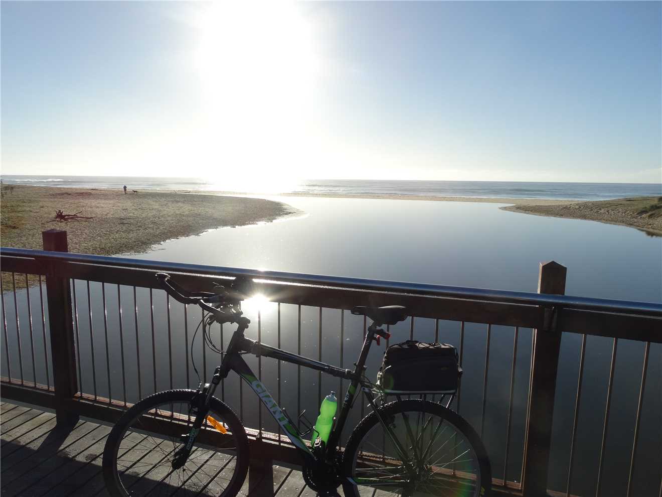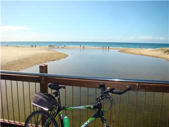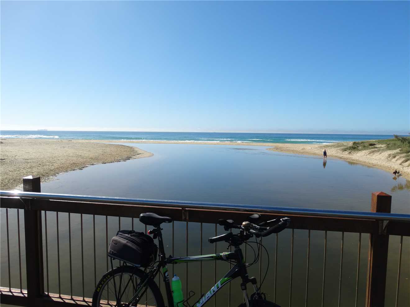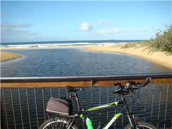 I headed along the shared path past the Dicky Beach SLSC along the back streets to Currimundi Lake. Along a shared path to Nicklin Way, over the bridge along another shared path beside the north side of the Lake, following the path for 1-2 kms then along the back streets to the Lighthouse or along the shared paths. It depends what mood I'm in. At the Lighthouse, I turn around and head back to Oceanside then back to the Lighthouse, then down the BIG hill to the mouth of the Mooloolaba river. Stop at the end and eat my bananas then ride back UP THE BLOODY BIG HILL back to the Lighthouse then back to camp. Usually about 47kms.