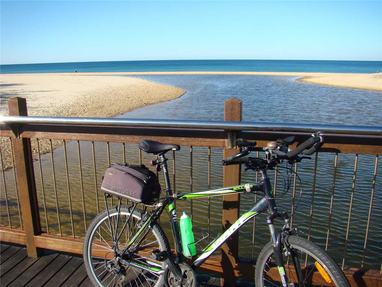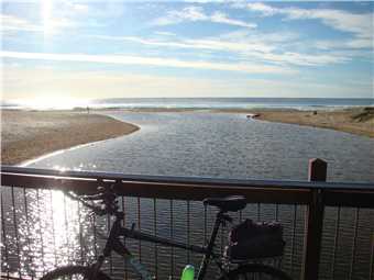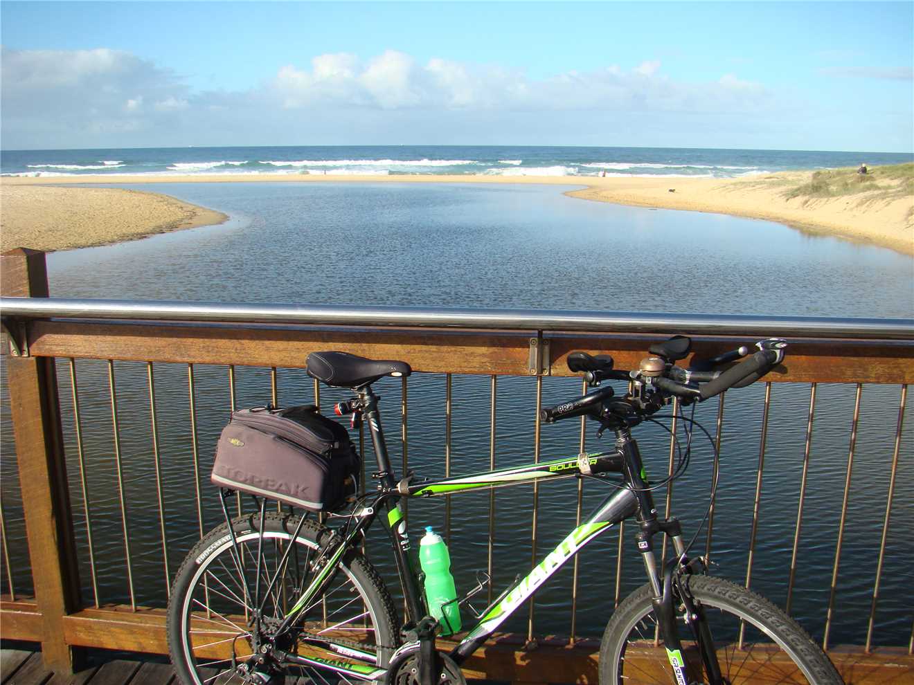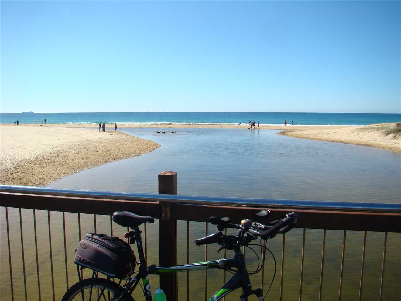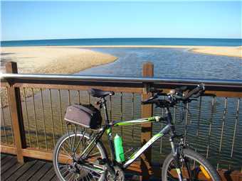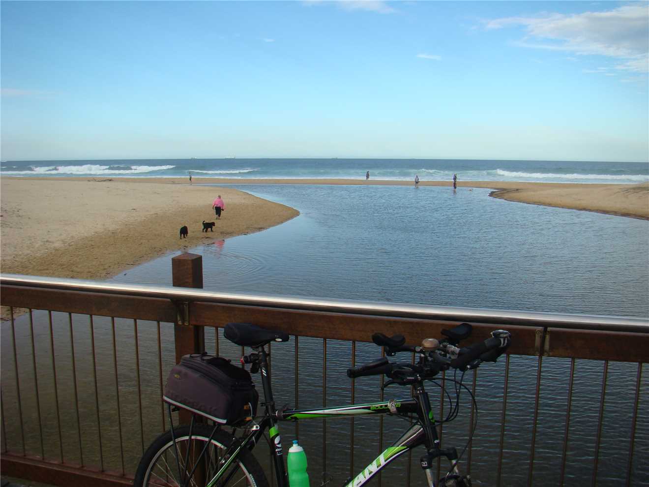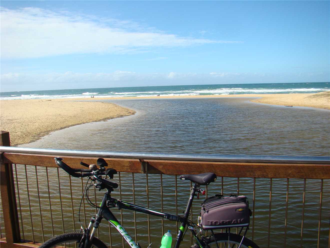 I headed along the shared path past the Dicky Beach SLSC along the back streets to Currimundi Lake. Along a shared path to Nicklin Way, over the bridge along another shared path beside the north side of the Lake, following the path for 1-2 kms then along the back streets to the Lighthouse or along the shared paths. It depends what mood I'm in. At the Lighthouse, I turn around and head back to Oceanside then back to the Lighthouse, then down the BIG hill to the mouth of the Mooloolaba river. Stop at the end and eat my bananas then ride back UP THE BLOODY BIG HILL back to the Lighthouse then back to camp. Usually about 47kms.