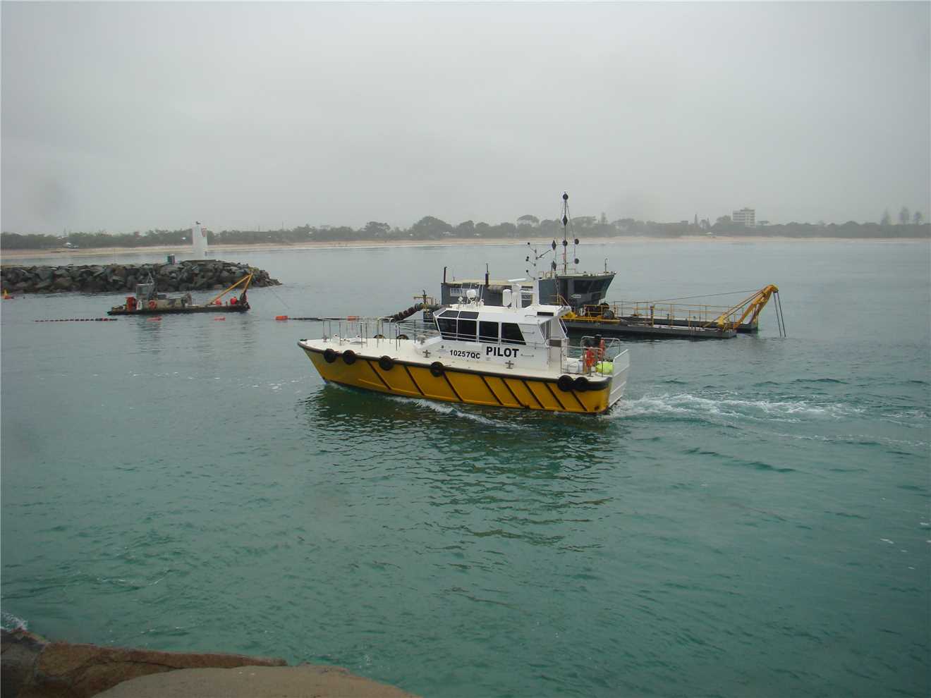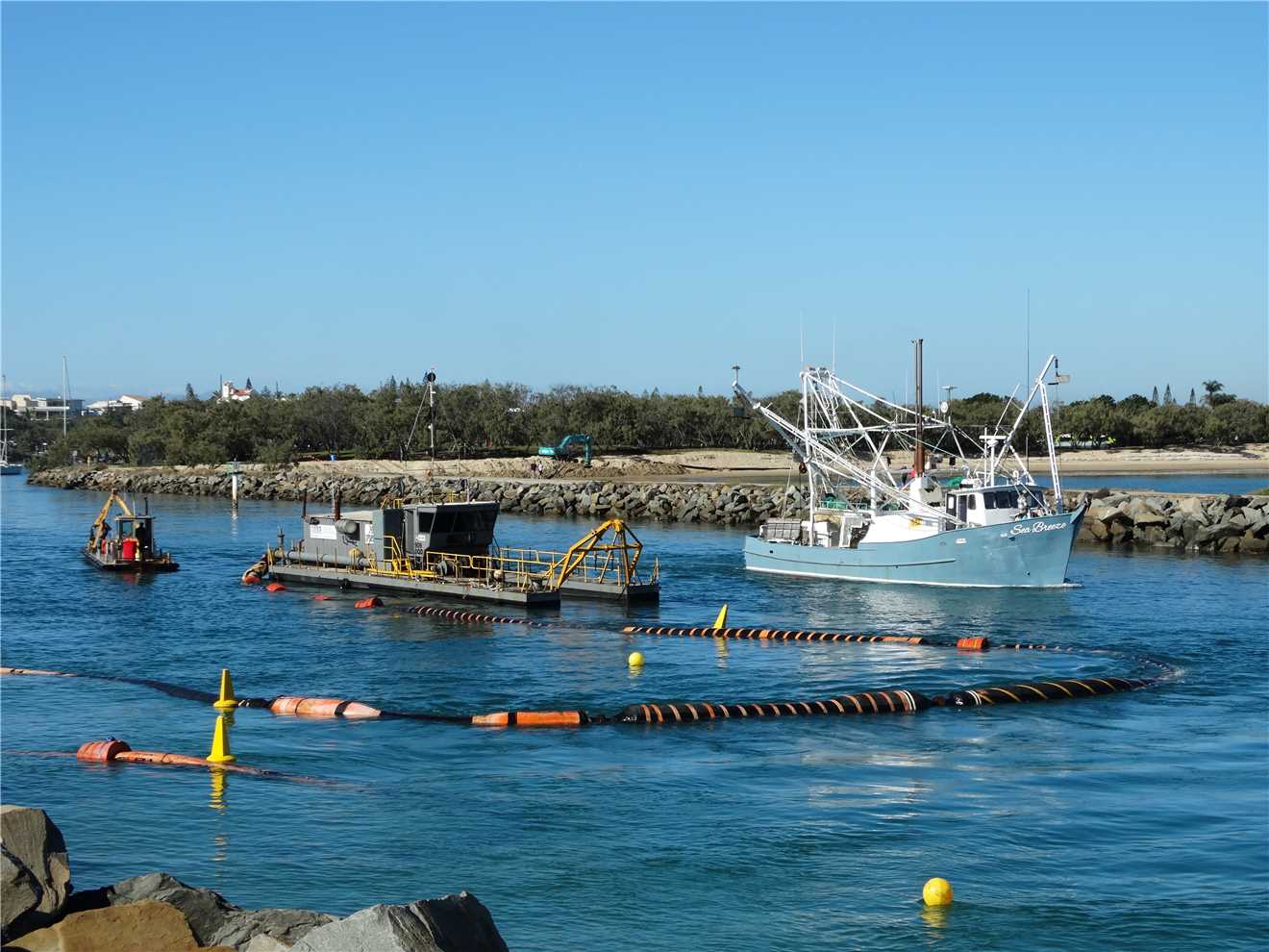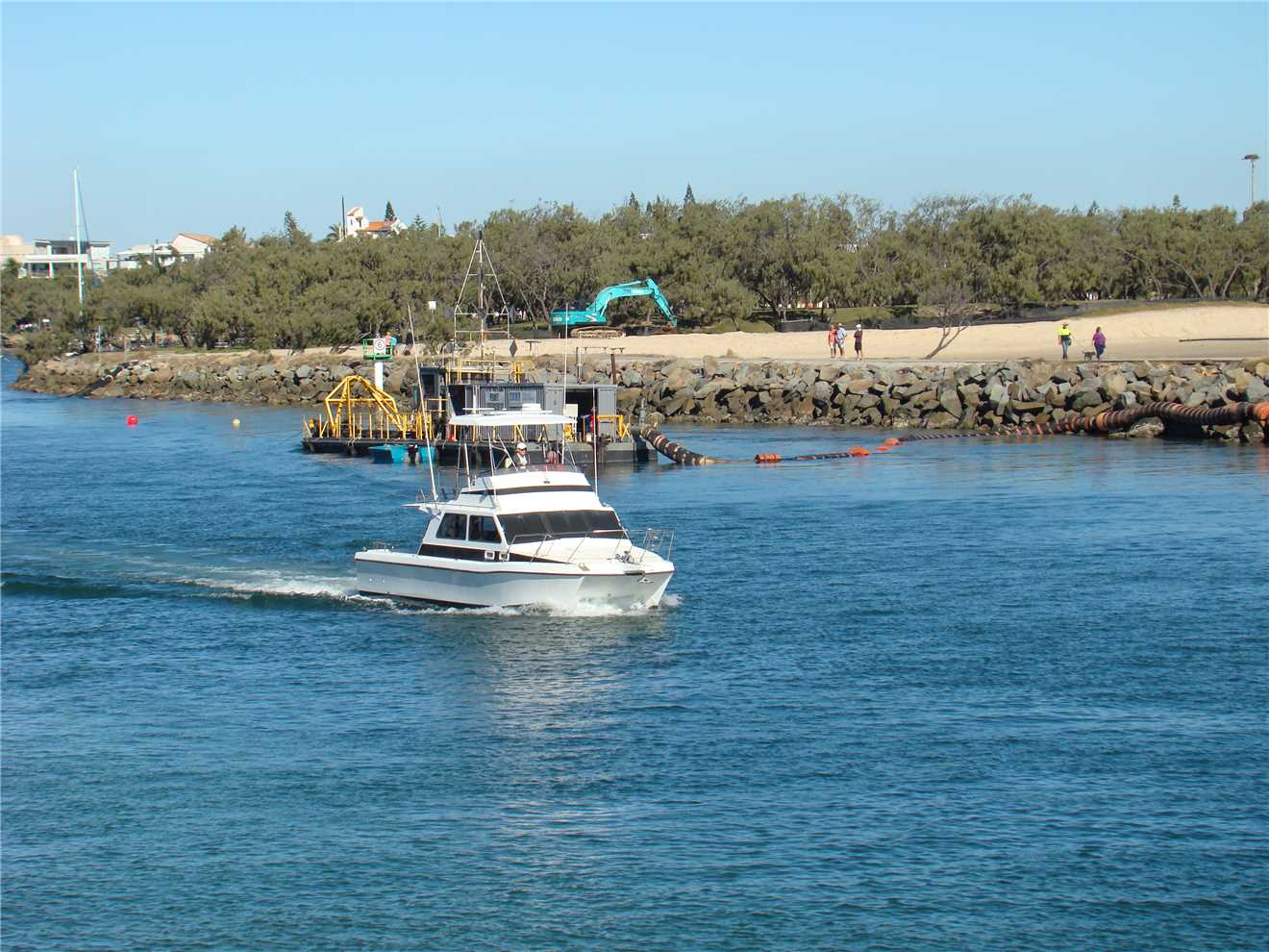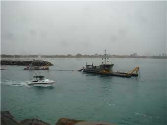 2:08pm - Heading out just passing the dredge.