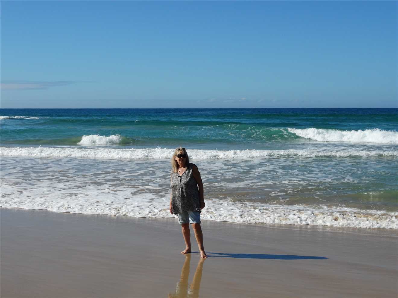 I got back to camp at 10:41am. I checked on Marg and she was still up, so after I showered, we walked over to the Dicky Beach shopping strip and had a coffee at 'Reelax at Dicky' and sat out the front and watched the world pass us bye. After coffee, we went for a walk along the beach. The tide was in but it was still magic. Back at camp, reading my emails, I had received one from 'my stalker' and we will meeting up (again), next week for coffee and a chat.
