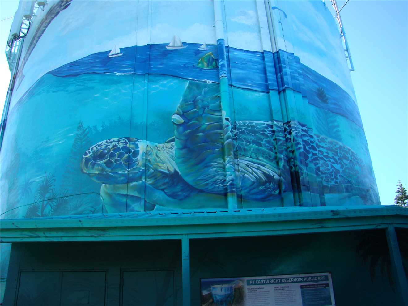 2:01pm - The new mural on the watertank.