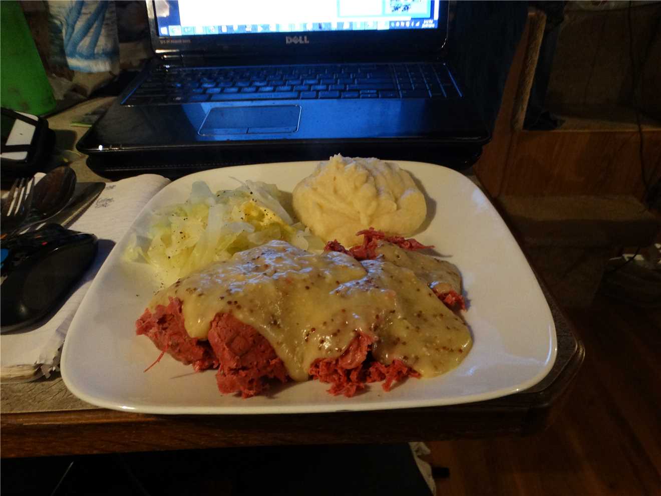 Dinner was roast pork and vegies that Marg bought at lunchtime. It was YUMMA.