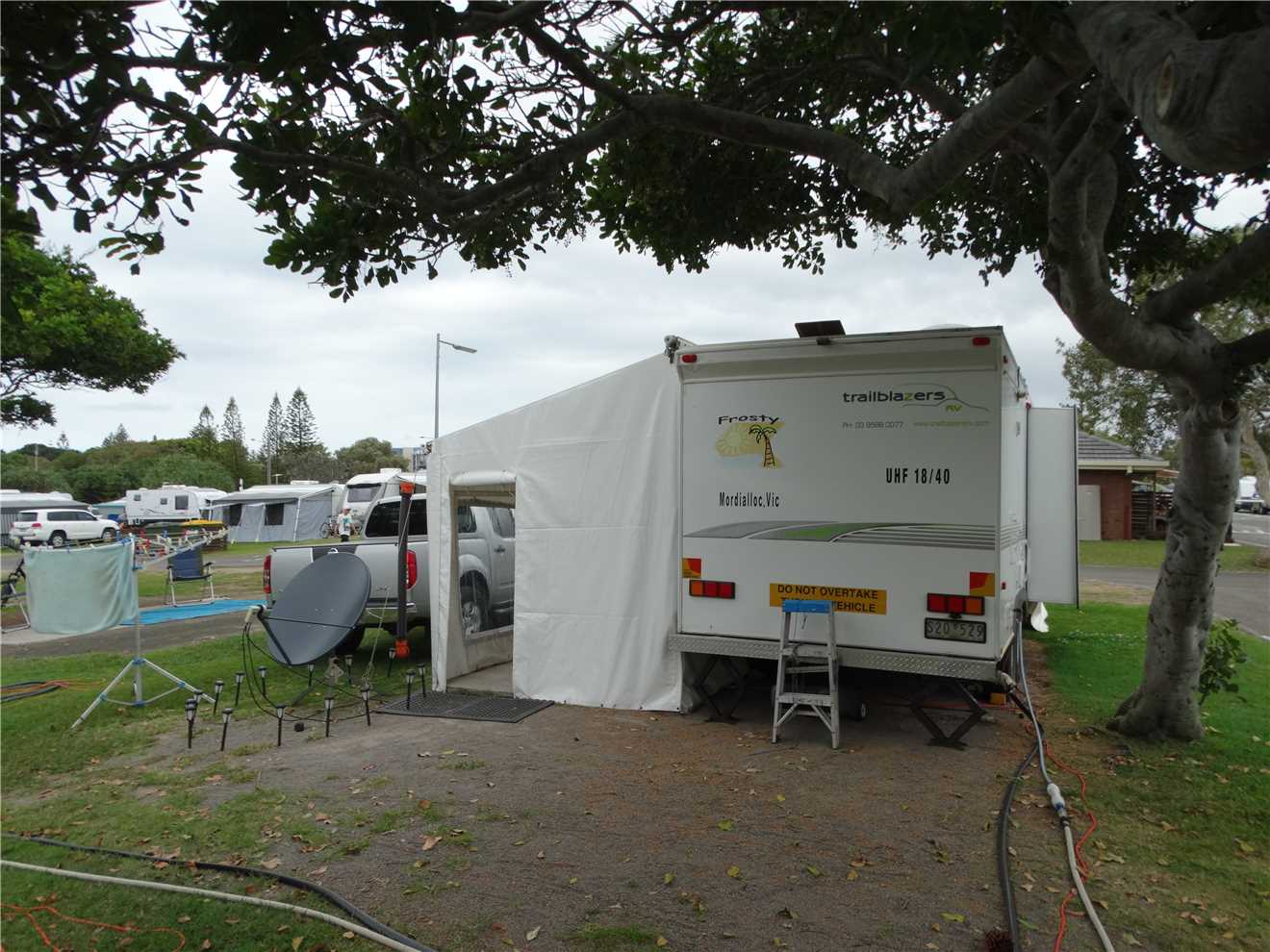 So that immediately changed my plans for the day. I now had heaps of time to pack up what we could. During the morning, I drove the mighty Navara upto the Caltex Currimundi toppped it up with diesel and air in preparation for tomorrow's departure. When I came back, Marg and I walked over to Rose's bakery for a coffee and read the paper on our iPads.