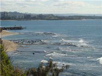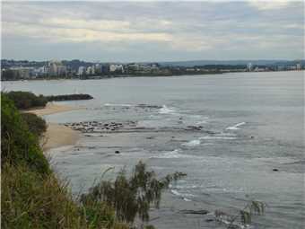 12:10pm - Looking over the rocks towards Caloundra.