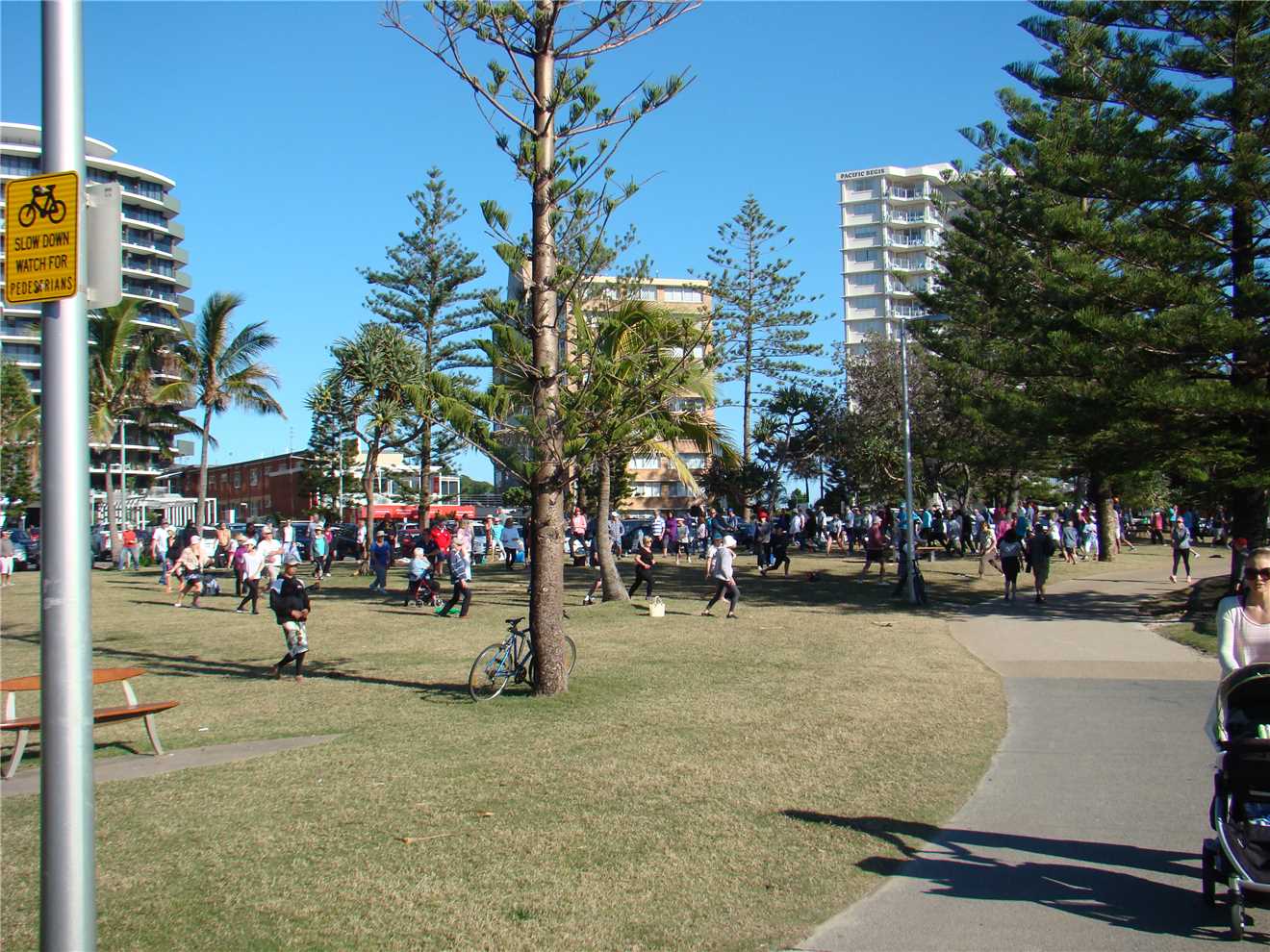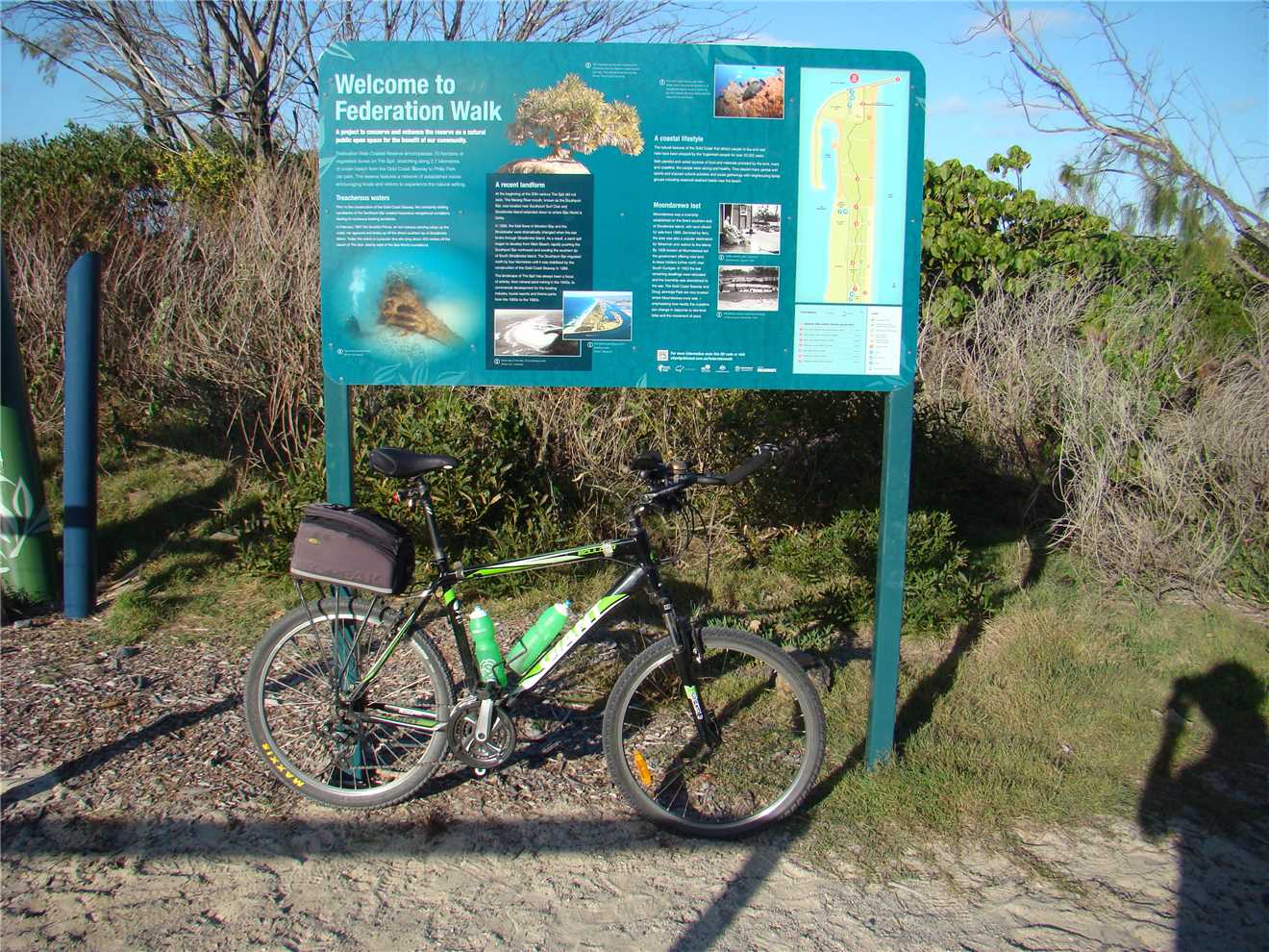 I slept well and got up about 7;30am and decided that I wouldn't ride, so I joined some of the guys on the bench seats overlooking the Broadwater and we talked crap. It was TOO BEAUTIFUL not to ride, SO I had a change of plans. At 9:45am, I changed into 'cycleman' and left camp. As it was Sunday and there are 2 million people out walking, I decided on my short route, keeping on the road where it was safe to do.