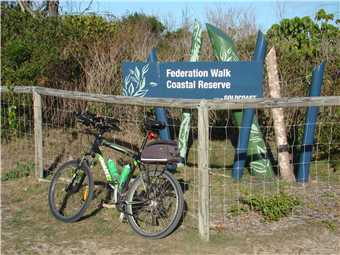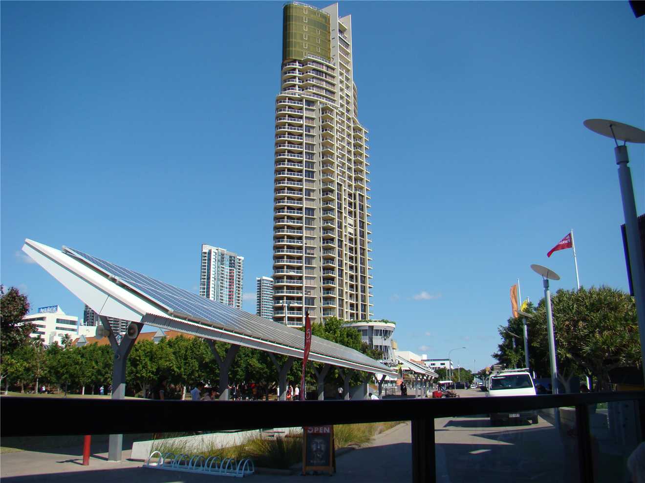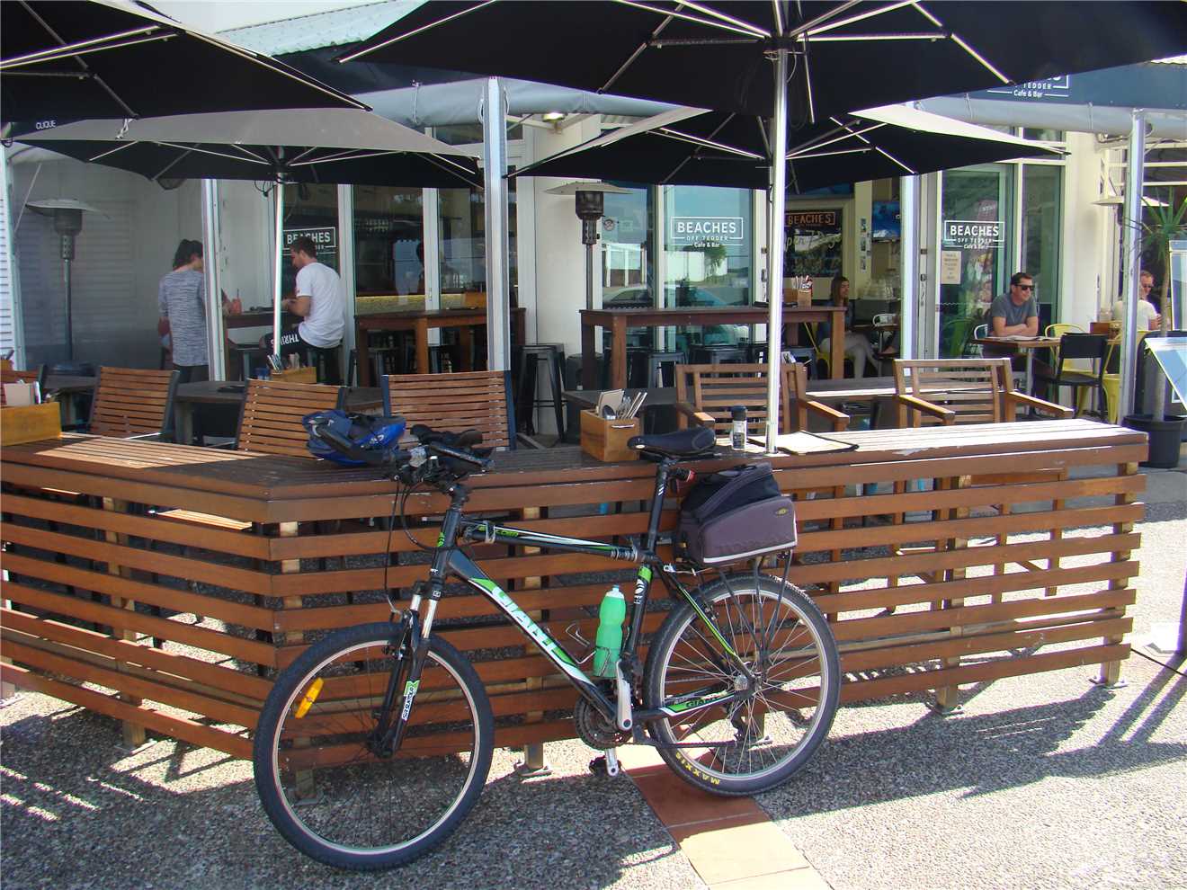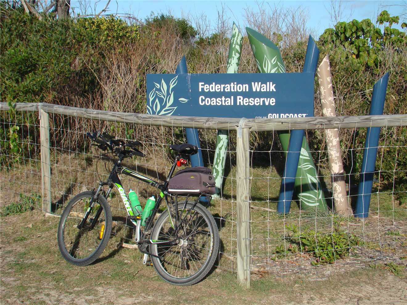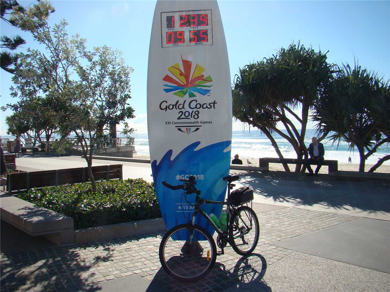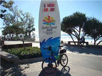Burleigh Heads Bluff, where I spoke to a gent in a motorised wheelchair. Then headed back to the North again and stopping for coffee at BSKT Cafe near Nobby Beach then continued onto Surfers to take my daily weather photos then headed via the Federation 'gravel' Walk out to The Spit, where I ate my 3 bananas and then rode back to camp.