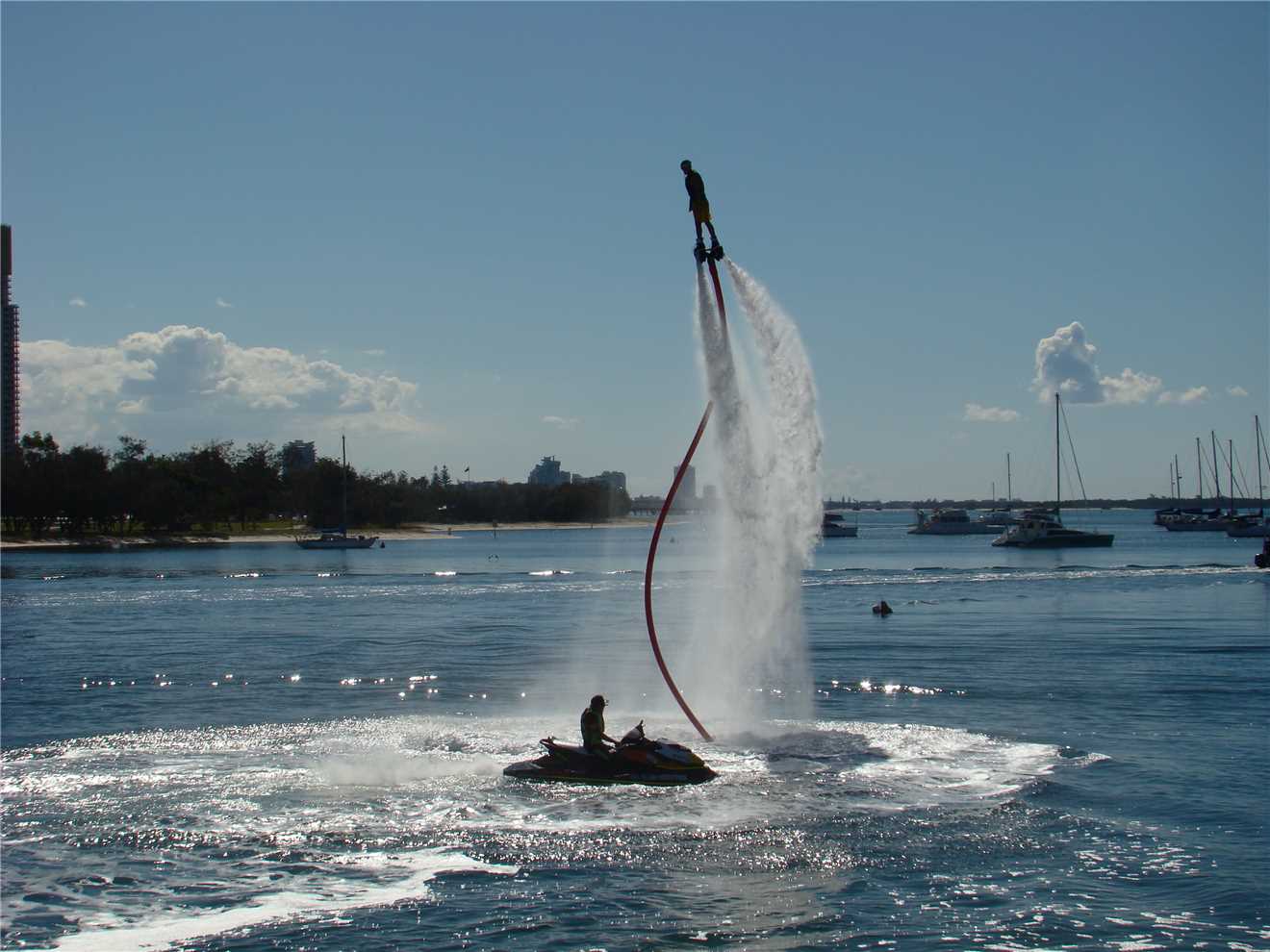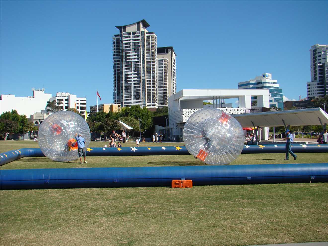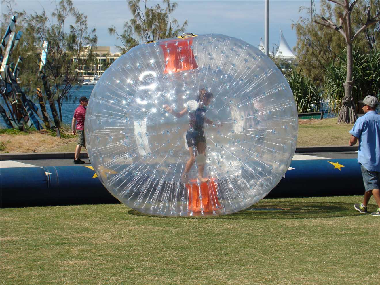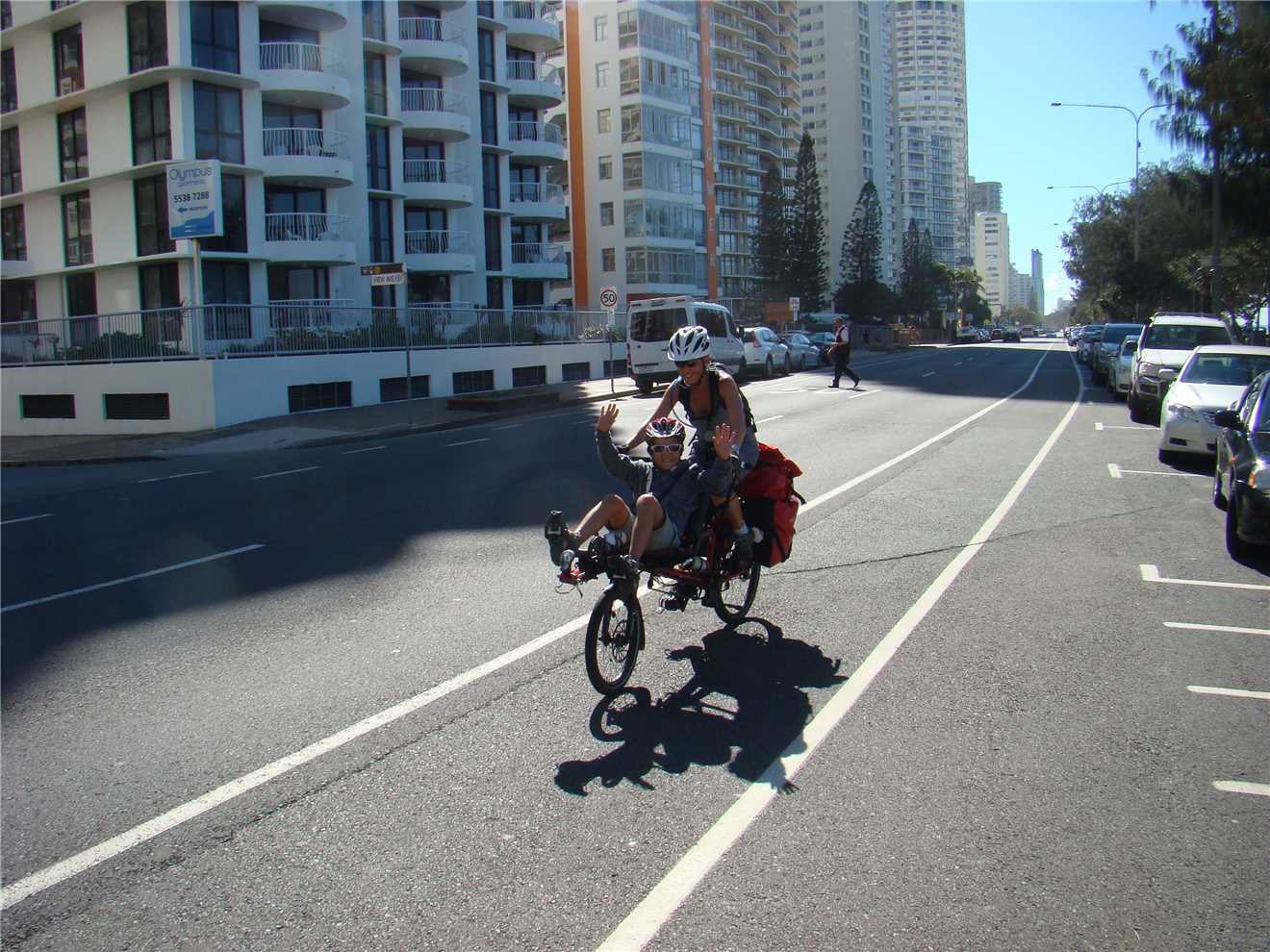 I rode out of the park and headed North to Lands End and then South to Surfers. As soon as I turned south, I was AGAIN riding directly into a 'bloody awful' headwind. As I rode through the Broadwater parklands, there were the clear plastic balls that you climb inside. The kids were queued up and really enjoying themselves. At Main Beach, I was passed by a Ferrari, that parked about 300 meters up the road. As I rode towards it the driver alighted from it. Now I expected either an elderly gent and a young "drug cartel" male. Not really. Anyway, a 'large' elderly woman got out, shut the door walked around to the passenger door, opened it, lent inside and picked up her small while hairy dog, probably 'shitsoo'.