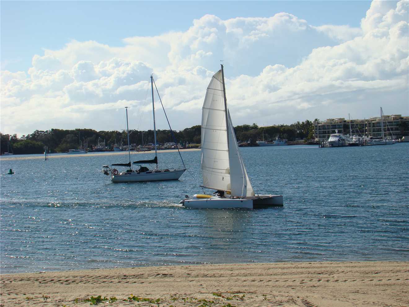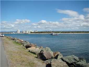 We entered the Bruce Hwy at the Caloundra onramp, drove 52kms to the Service Centre at Burpengary and had Maccas for brekky. When leaving I bought a bag of crushed ice, which I put down our toilet and the movement (of the fiver) cleans the walls of our 150 liter 'black water' tank. We entered the Gateway and went over the Storey Bridge Gateway Bridge (Lukey are you happy now, I changed it) and continued along the M1 to the Smith St exit. The traffic was excellent, no stoppages at all. We arrived at Southport just on 11:48am, even though Tom told us at the start that our ETA was 11:39am, so very close.