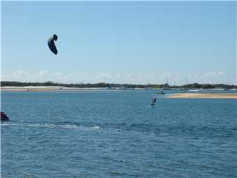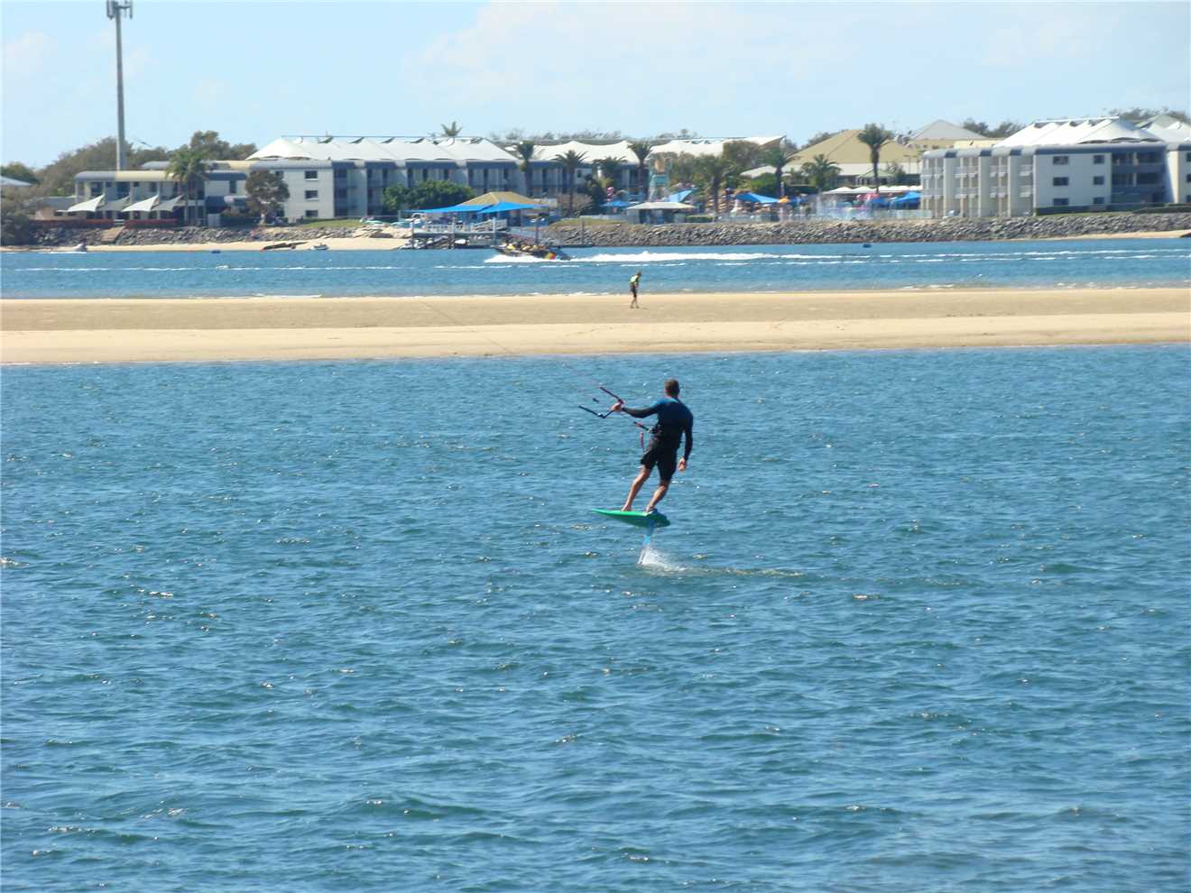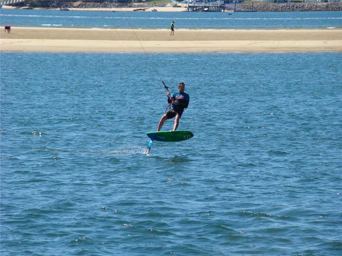 I continued onto my turnaround point at Laycock St, Surfers where I headed north towards the Spit. It was beautiful riding with a strong tailwind pushing me along via the Federation 'gravel' Walk out to The Spit. On the Spit, I think ALL Queenlanders decided to walk out to the end. It was chockers, I nearly had to walk. But I didn't. Even with so many people there, 'my rock' was empty, SO I sat on it and ate my 2 bananas, before heading back to Cafe Rockpool for a coffee then headed back to camp. Just opposite our camp, I watched the kitesurfer, nothing unusual, until I saw the FULL view and he is riding a foil. I spoke to his female friend watching him. She said "He is good". What an understatement, he was bloody brilliant.
