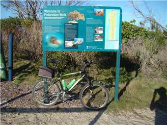 We both slept well, except at 5:00am I had to get out my sleeping bag, I had on 2 blankets but was still cold, so with my sleepingbag as a blanket, I was warm as. Marg was first up at 6:30am, I got up just before 7:00am. We had brekky and I looked for my cycling gear. I hummed and harred about wearing my tights but gave it a miss as I am tough. While Marg did her thing, I changed into 'cycleman' and left camp at 8:08am.