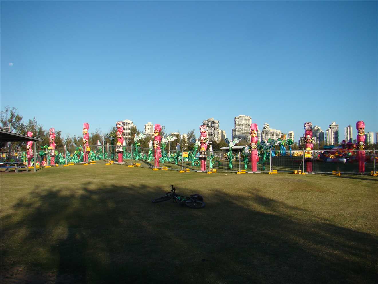 I decided on my normal ride of approx 56kms. I rode out of the park and headed North to Lands End and then South to Burleigh Heads Bluff. I eventually made it to the Burleigh Heads Bluff, where I photographed a couple of shots. Then headed back to the North again and stopping at Surfers to take my daily weather photos then headed via the Federation 'gravel' Walk out to The Spit, where I ate my 2 bananas and then rode back to camp. As I rode back along the gravel walk, I spotted another Lizzy, he walked across the track, by the time, I stopped and walked back, he had disappeared. I then continued back to camp, as all the cafes had closed. In the Broadwater Parklands, the Gold Coast Festival of Lights was being setup. (It starts on 26th August until 3rd October - costs $22 adult $14 child)