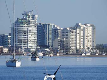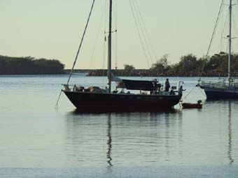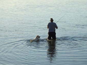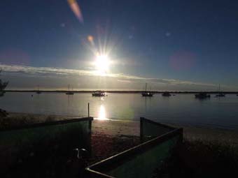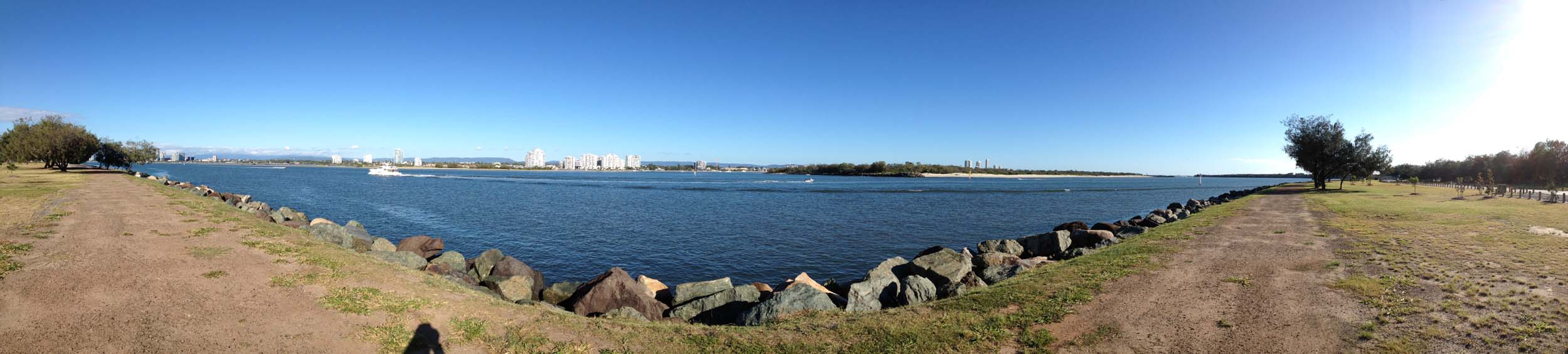 9:59am - panoramic view from the mouth of the river looking back upstream.
