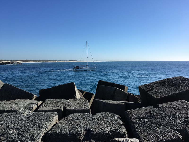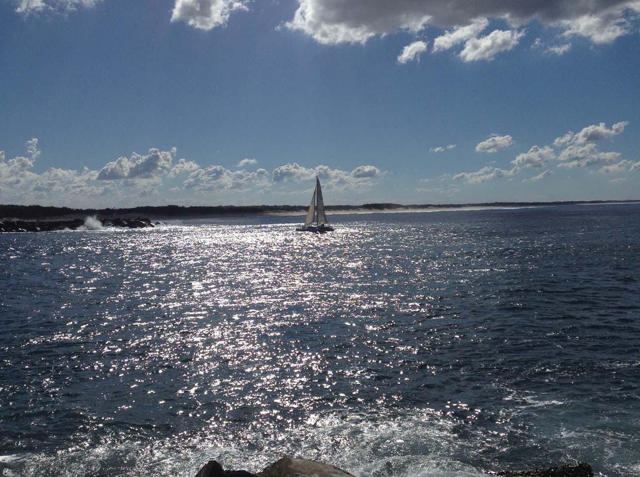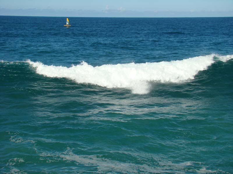 yacht tacking upto the seaway, this is the first time that I can remember seeing an 'off the beach' yacht sailing in the seaway. On the