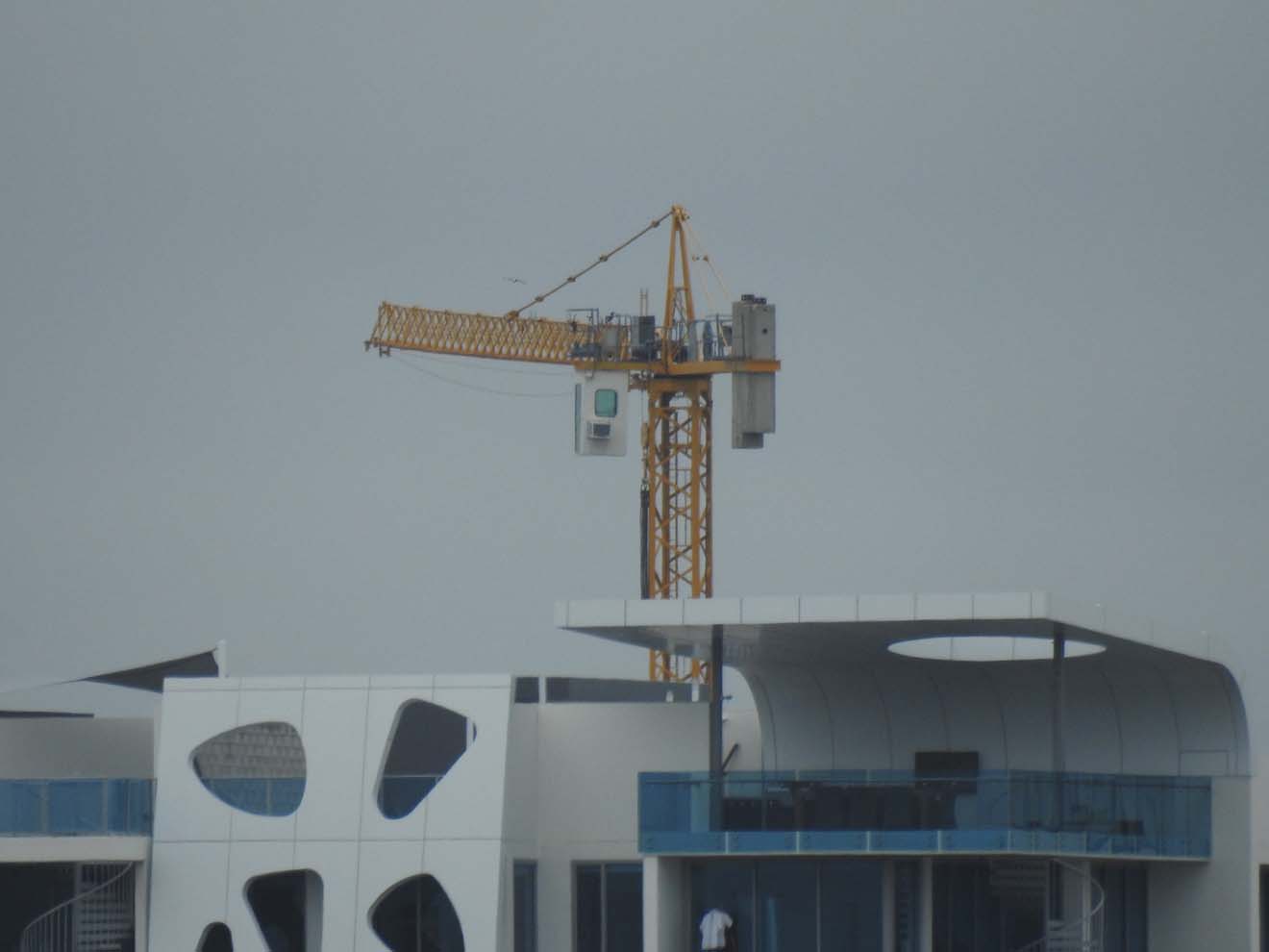 Using my zoom on our crane in the distance.