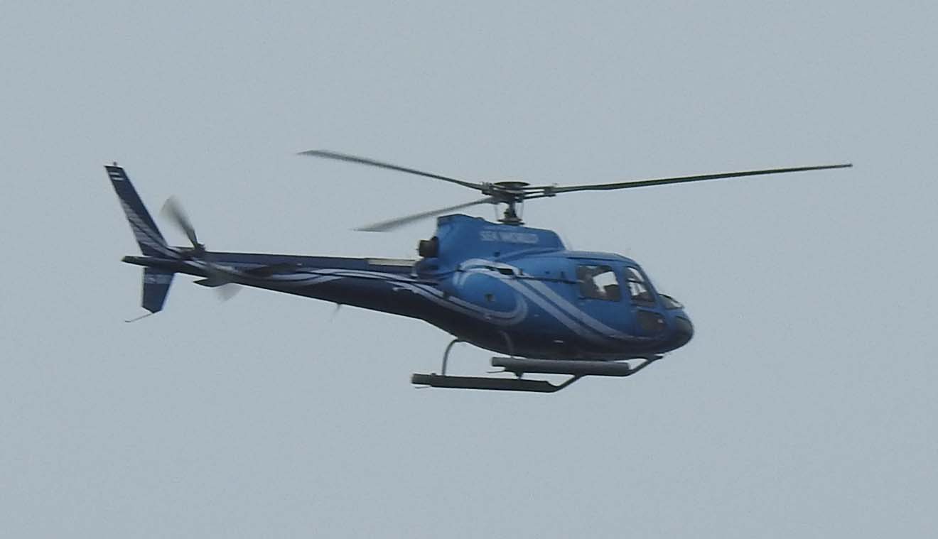 The Sea World Helicopter flying past.