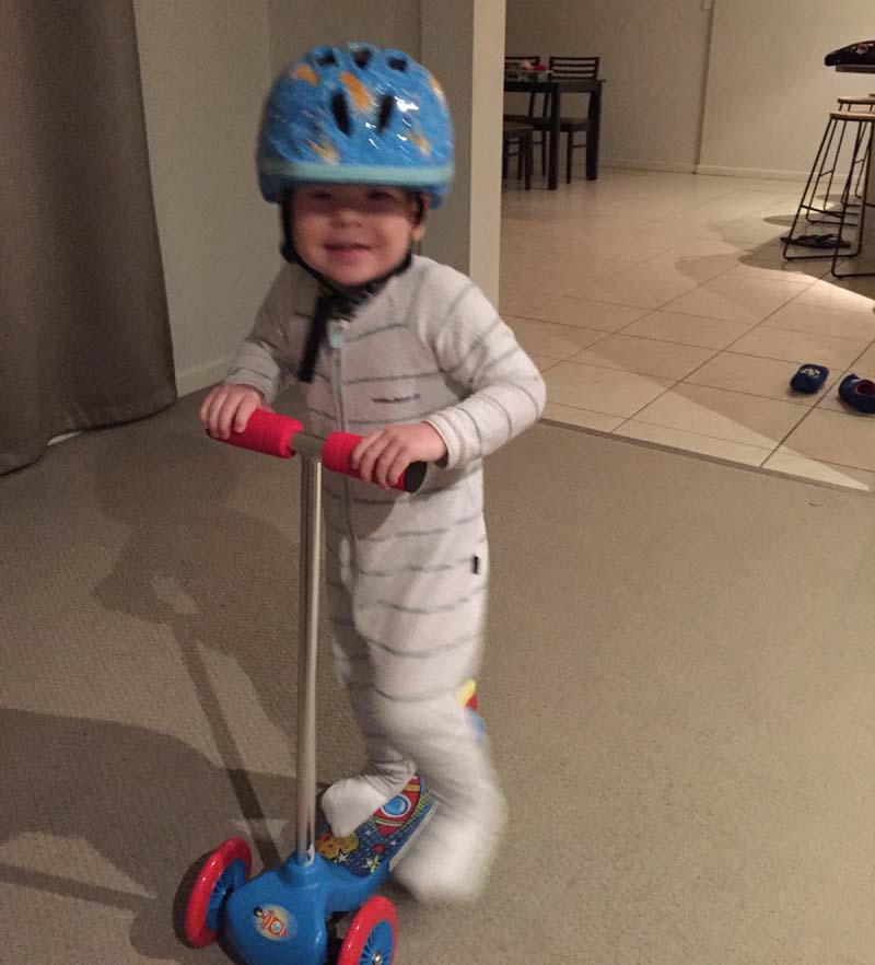 At home, Lukey was amazed how Mase was handling his new scooter.