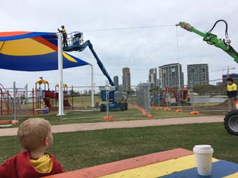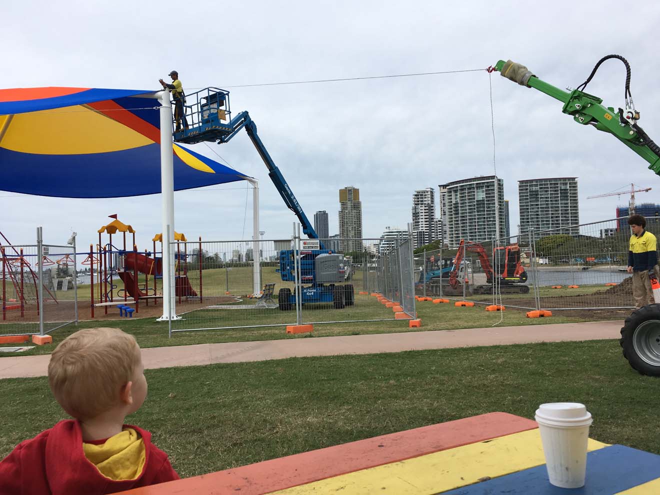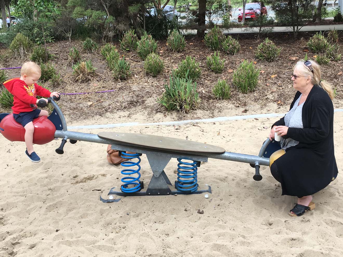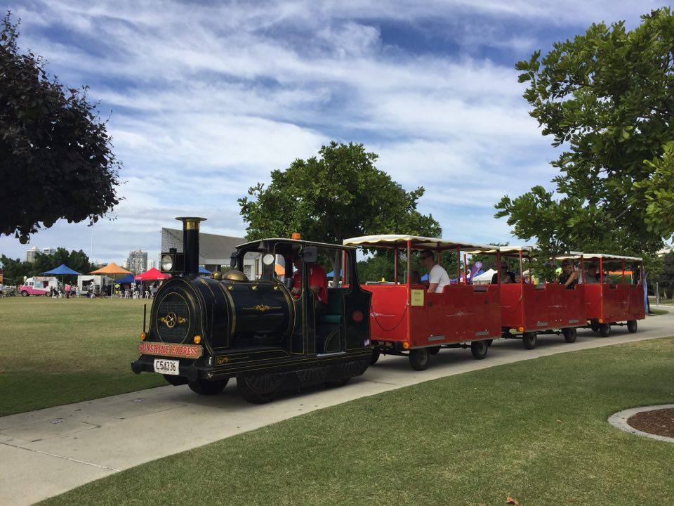 'thing' happening on the Broadwater Parklands that just happens to be 10 meters from our coffee spot. Little Mase spotted a train and Marg took him on it.