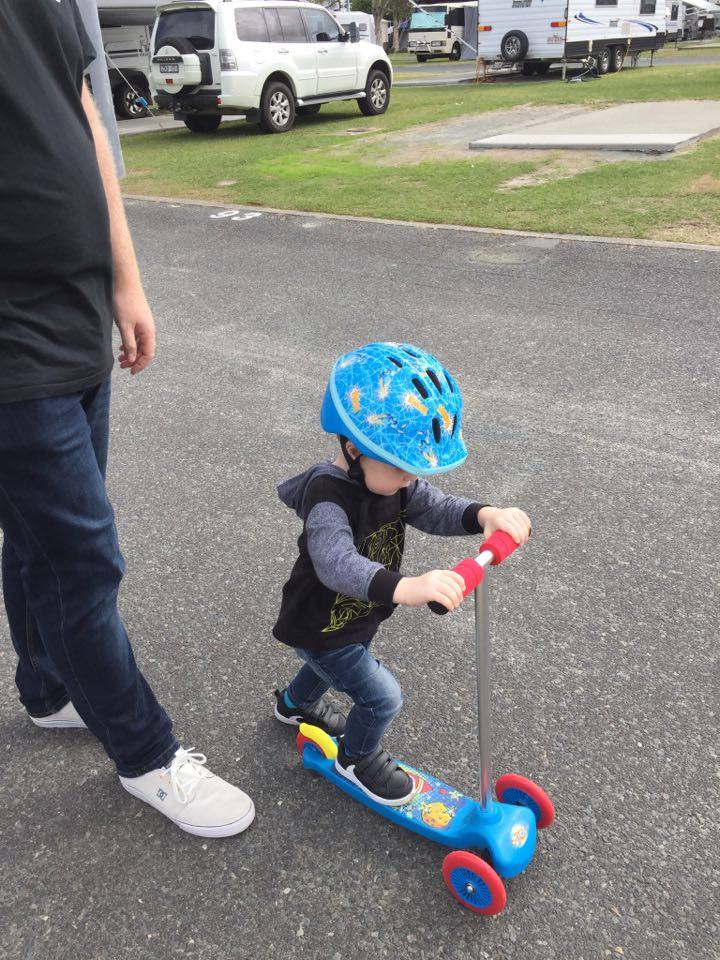 cars to Helensvale Shops for a coffee and some shopping at Kmart. We bought Mase a cheap scooter, which he is continually playing with. We bought Mont