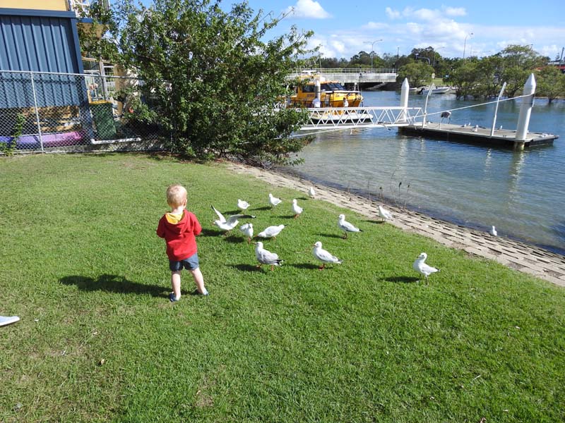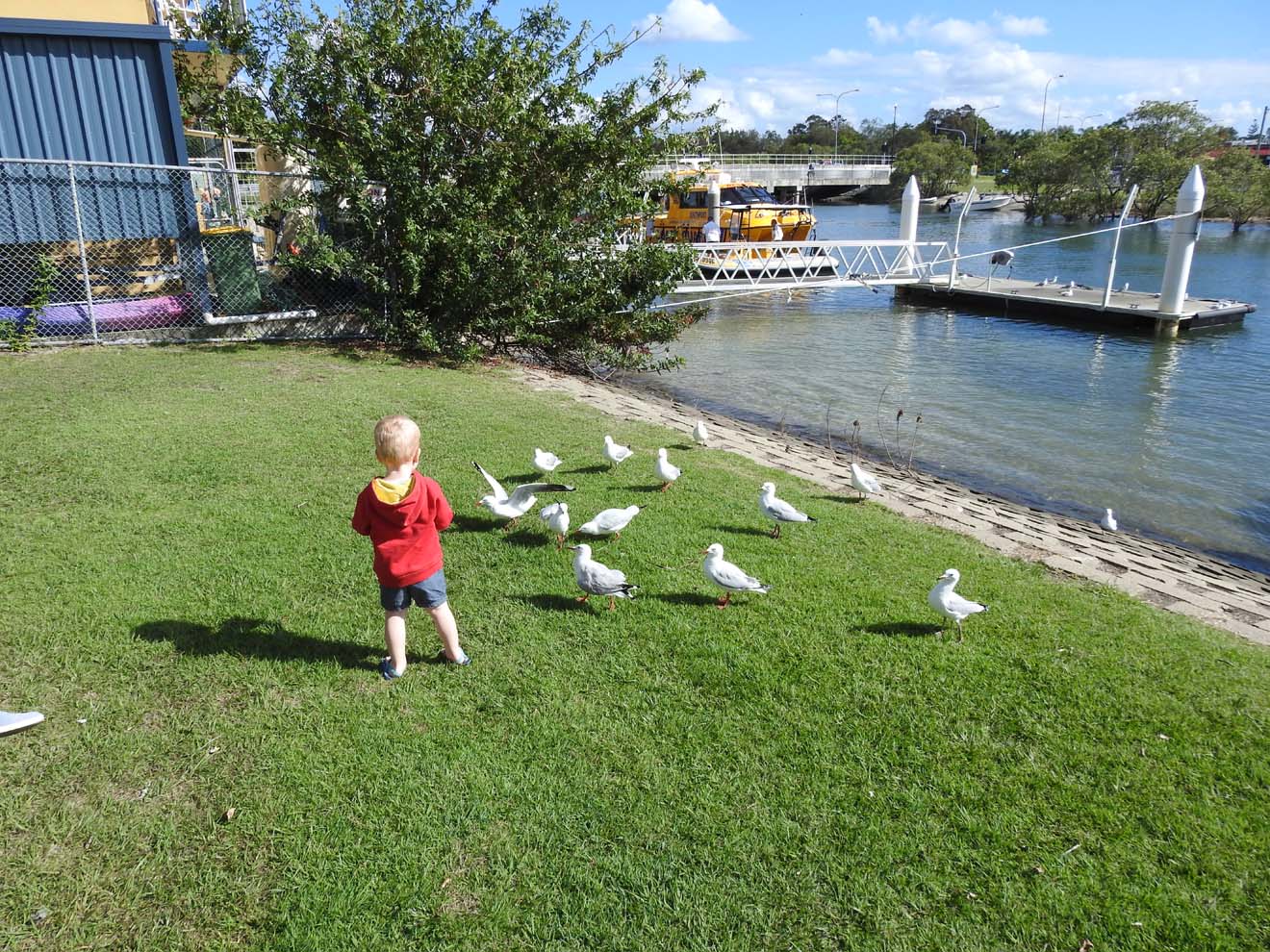 George is not overly impressed with bread and the four of them stayed just offshore. Thank God for seagulls, they kept Mase entertained.