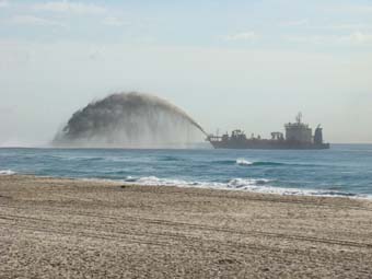 I left camp at 7:41am and headed south through the Broadwater Parkland, past Southport YC, through Surfers, Broadbeach, Miami and finally arrived at Burleigh Heads. As I passed Robbie's cafe, I saw that Robbie was sitting in the corner and his bike was out the front. I thought you beauty, I will speak to Robbie in 30 minutes, once I ride to and from Burleigh Heads. You guessed it, as I returned, Robbie had done a 'runner', so I kept riding. Only stopping to take numerous photos of the dredge.