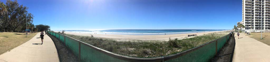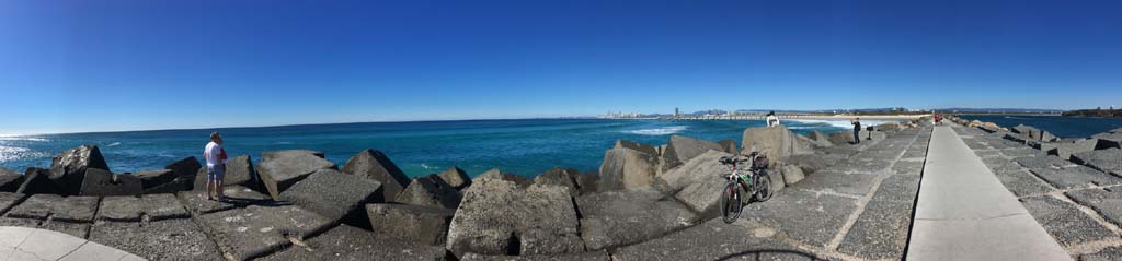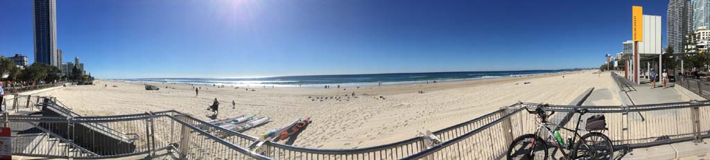 I left camp at 8;55am and there was an awful south easterly wind gusting to 32kph. I headed south along the shared paths and along the Esplanade down to Surfers and then back via the gravel path out to the Spit. Heading back to camp, I stopped at Cafe Rockpool for a coffee. After coffee, I rode to Lands End before heading back to camp, arriving at 11:55am after 37.8kms.