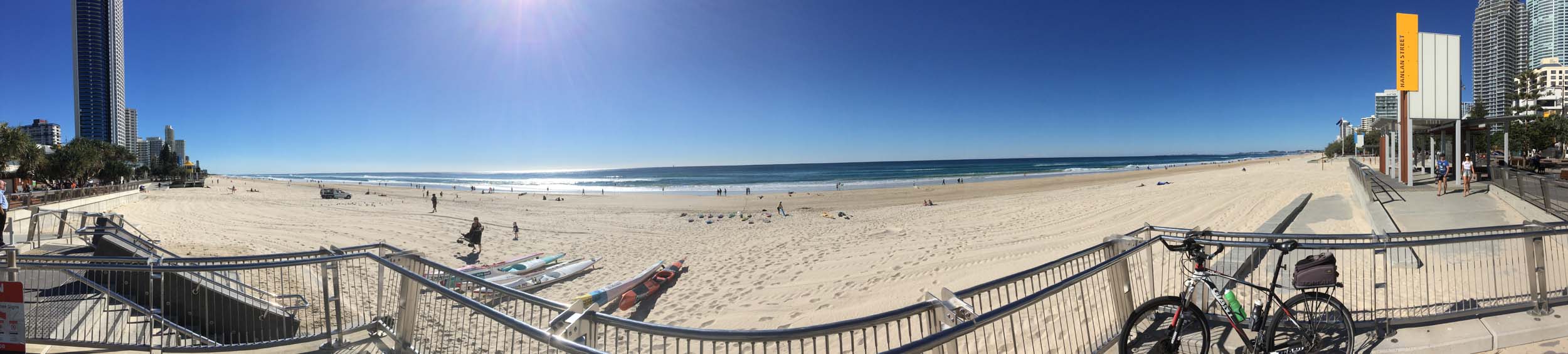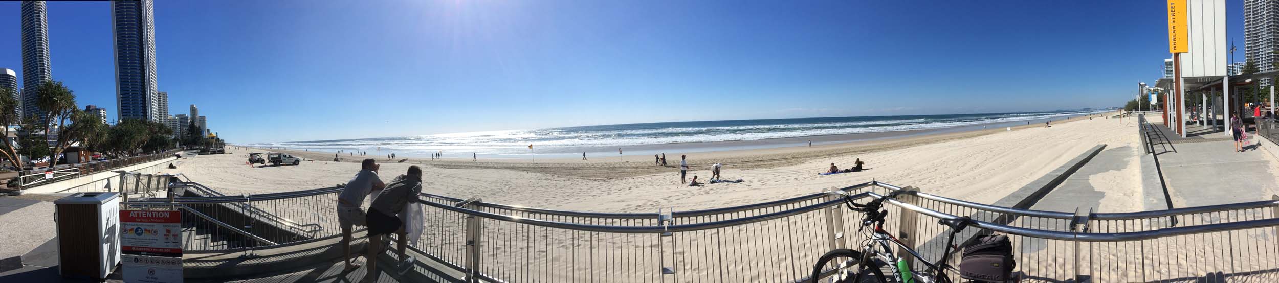 I left camp at 1:20pm and headed south to Surfers where I took my daily weather photo, then continued to the Spit via the gravel Federation Walk. There were 3 workmen clearing the edges of the gravel track. After leaving the Spit, I stopped at cafe Rockpool and had 3 scoops of rum and raisin ice cream, then continued to Lands End, stopped in at our Apartment. I think they will be doing a pour this week. Finally arriving back at camp at 4:03pm after 37.5 kms. A great ride.