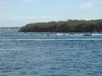 motoring towards the Nerang river bridge, SO we rode non stop to under the bridge and waited. Mase was happy when the skipper made the duck