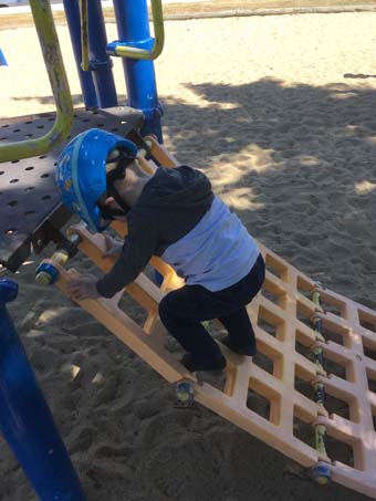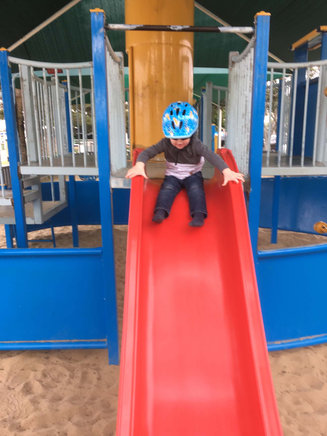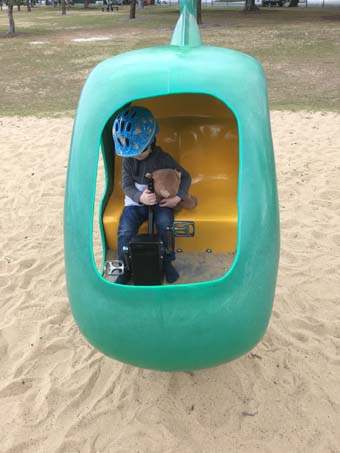 Same as last Friday, we stopped at 7 playgrounds where Mase tested various play equipment, which included a helicopter, slides and swings.