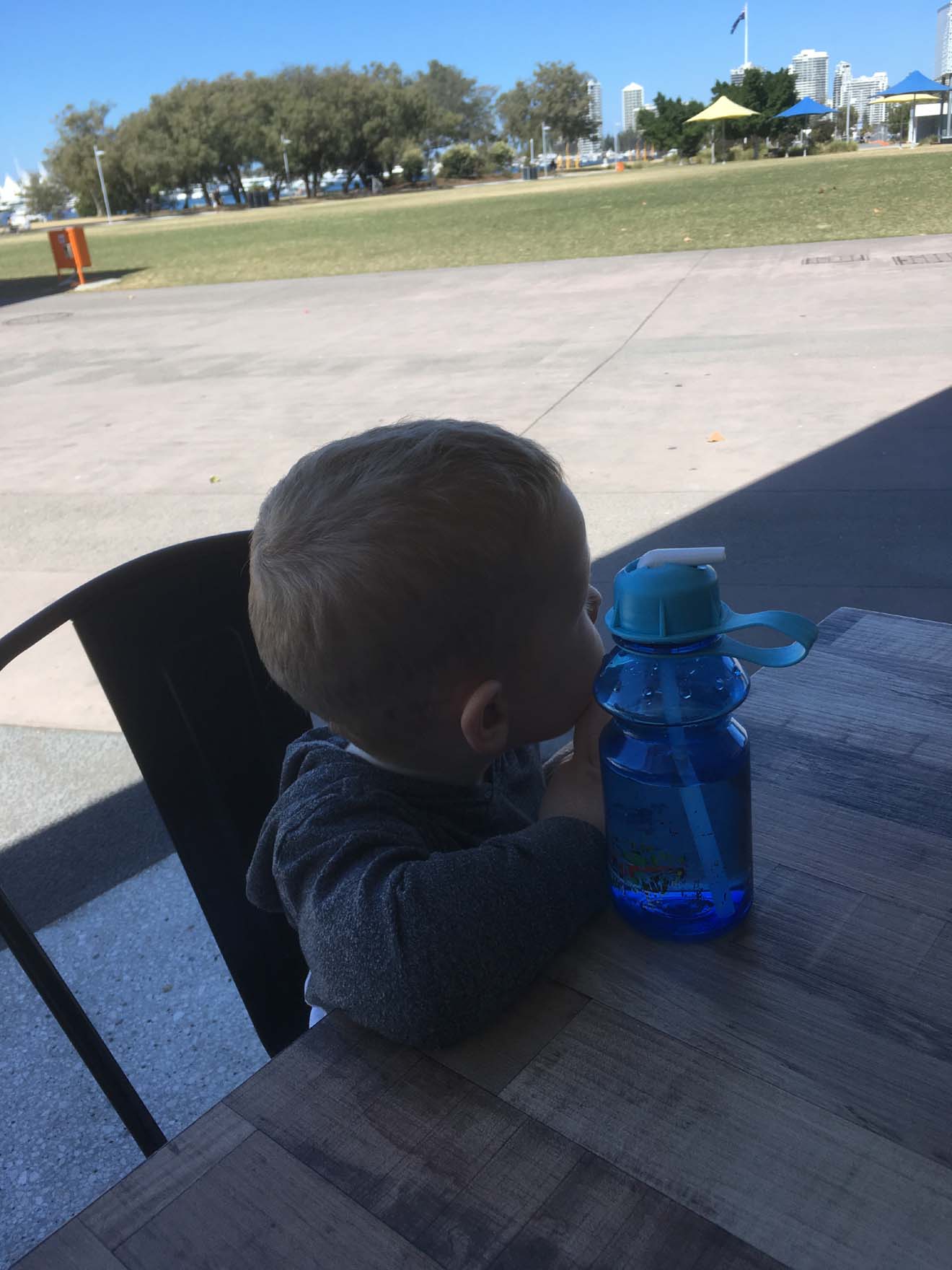 After saying 'Happy birthday and goodbye to dad', Marg and I met up with Lukey and Mase for a hotdog and coke, Mase had a mini donut,