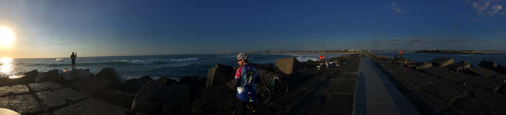 along Seaworld Dve to the end of the Spit, watched the magnificent sunrise, then headed to the end of the other Spit. Left The Spit and back
