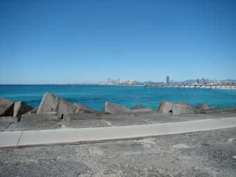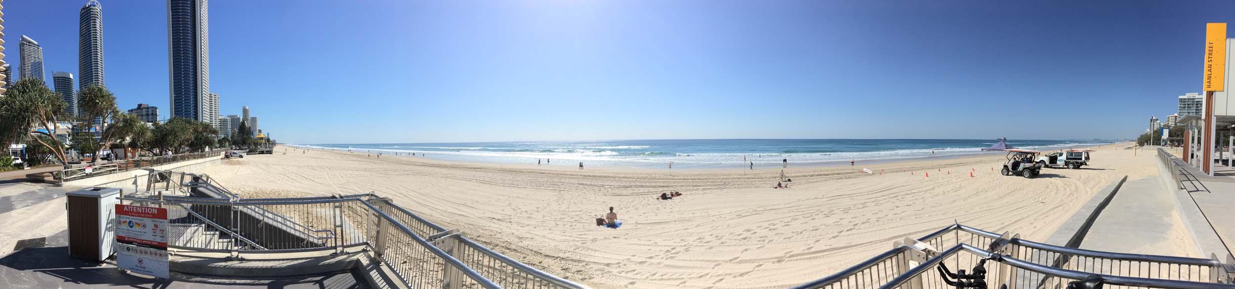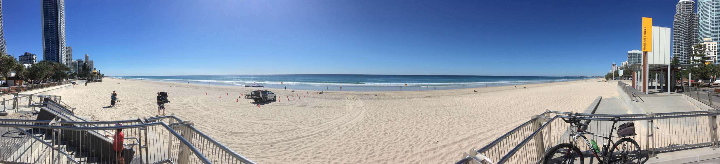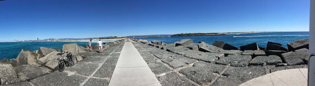 Esplanade to Surfers, where I took my daily weather photo before heading to the Spit along the gravel path. Heading back to camp, I stopped
