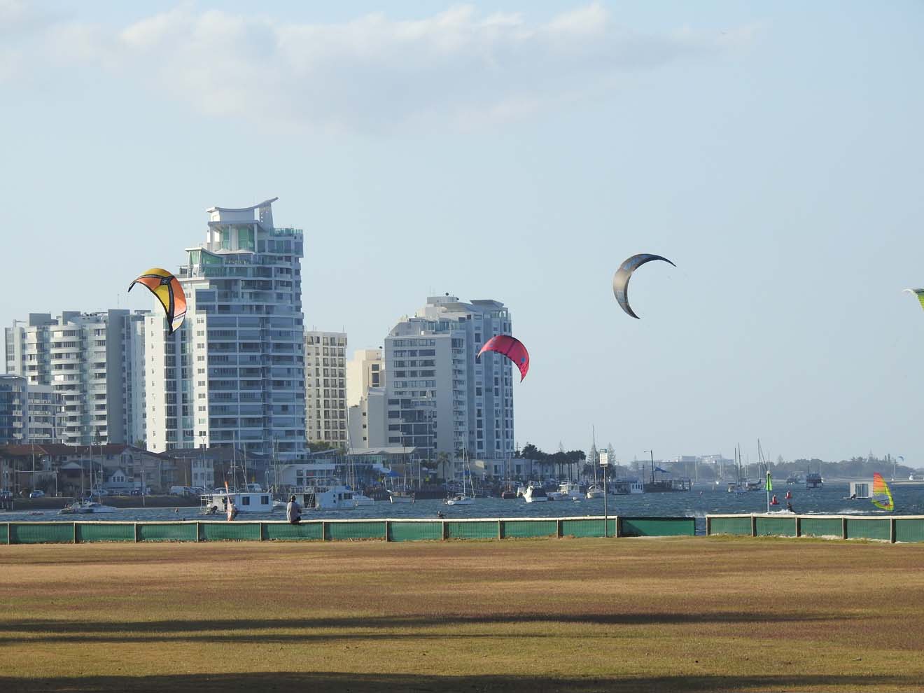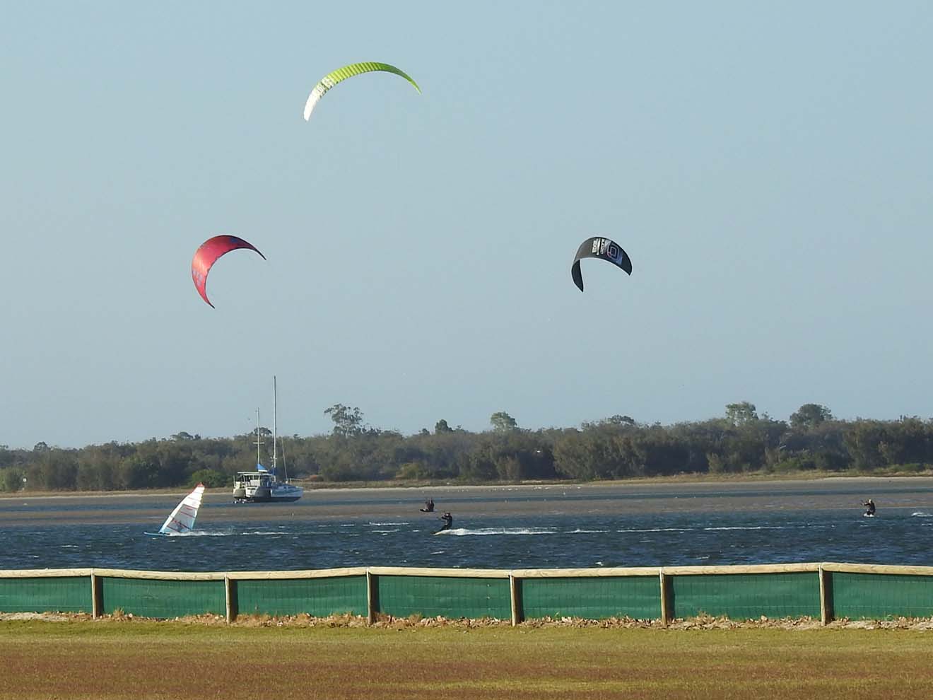 During the arvo, Marg had a pleasant sleep and is feeling better, while I buggered about on my laptop. I also saw the Kite Surfers through