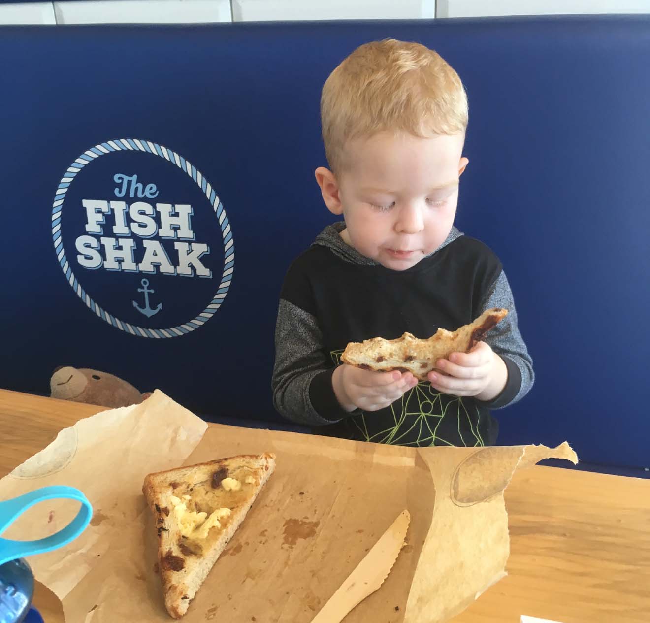 11:16am - "Katy, when is my raisin toast coming?"