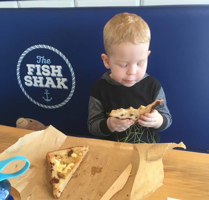 Katy served us, and made Mase's raisin toast and my coffee. After our food stop, we noticed AquaDuck but due to lack of time, we headed